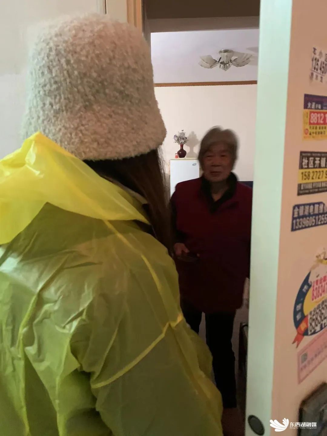 82岁的老人胡喜仙独居在碧海花园,三个儿子均远在国外。一夜落雪,道路湿滑,社区网格员敲门问候,及时关心老人的身体状况和生活所需。