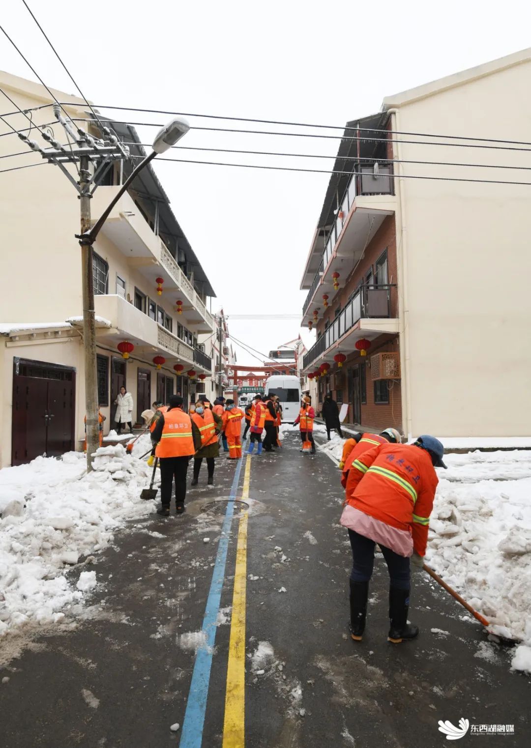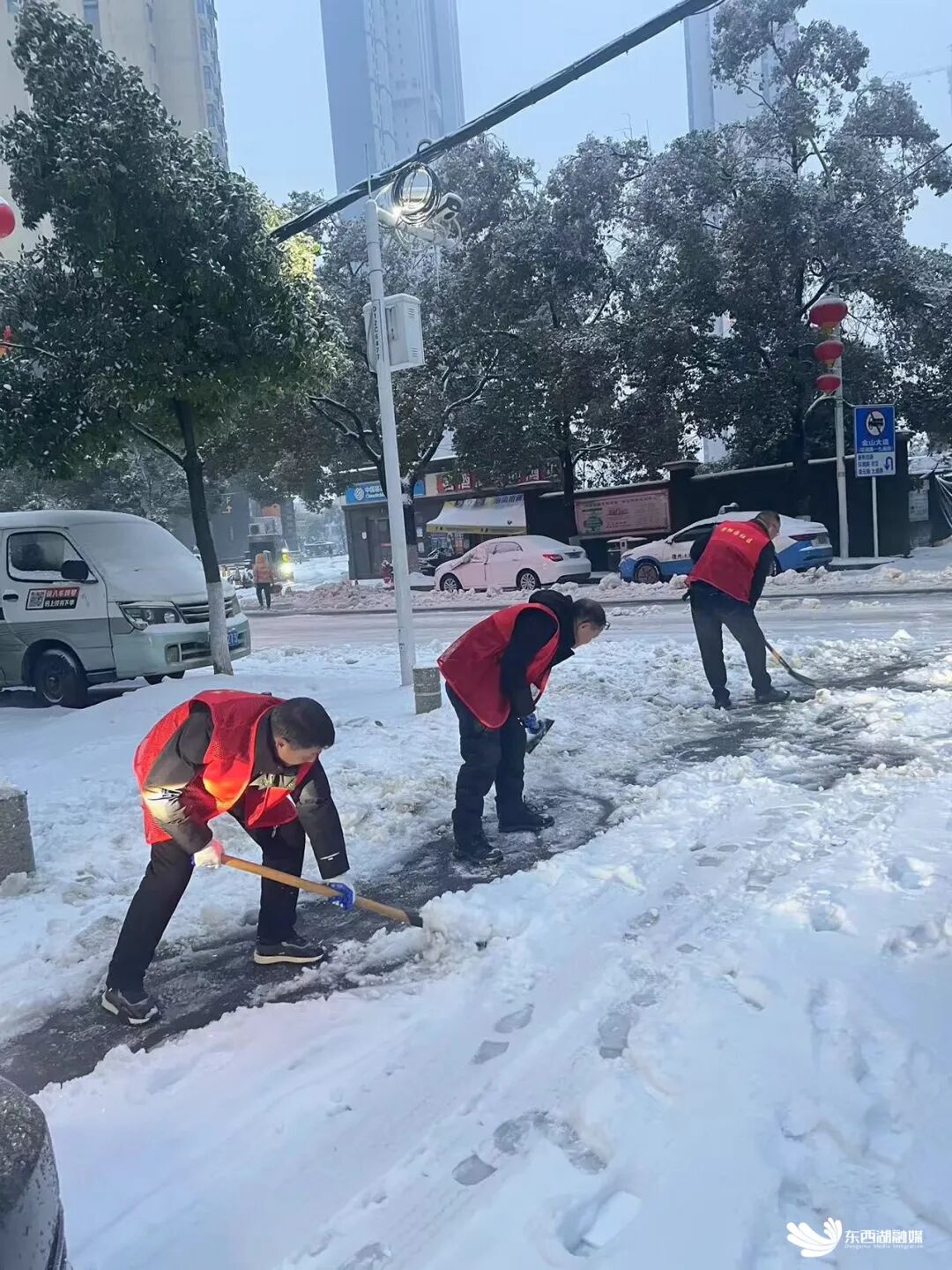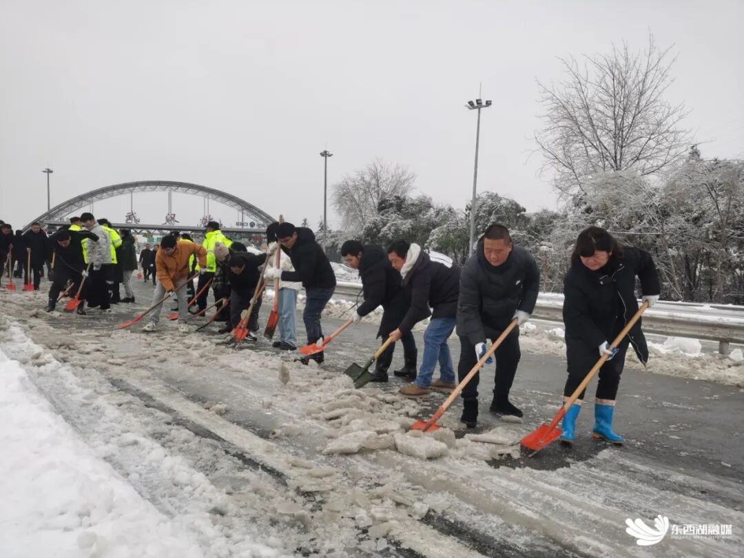 “充分发挥基层党组织战斗堡垒作用和广大党员先锋模范作用,让党旗在一线高高飘扬。”2月4日,东西湖区发动全区党员干部冲在一线。在城市的主次干道、交通枢纽,在背街小巷、乡村田间,随处可见的党员身影,如一面面鲜红旗帜,“走,铲雪去!”