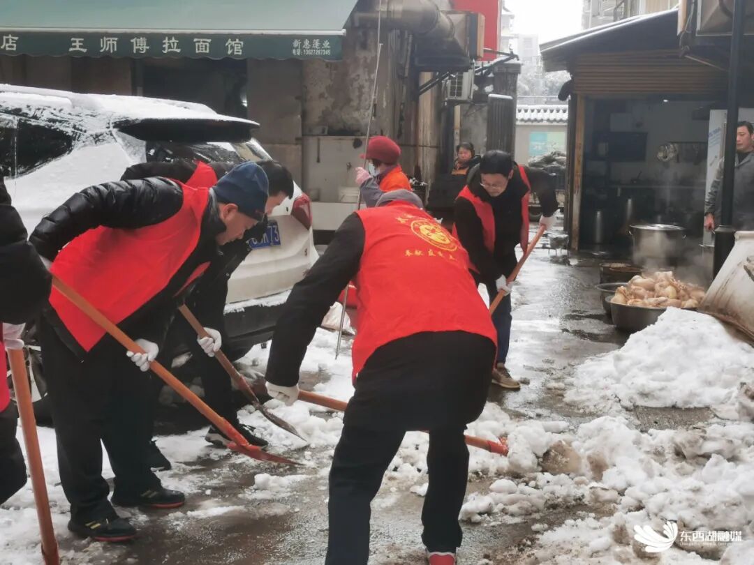 吴家山中学党员教师志愿队下沉社区除雪。