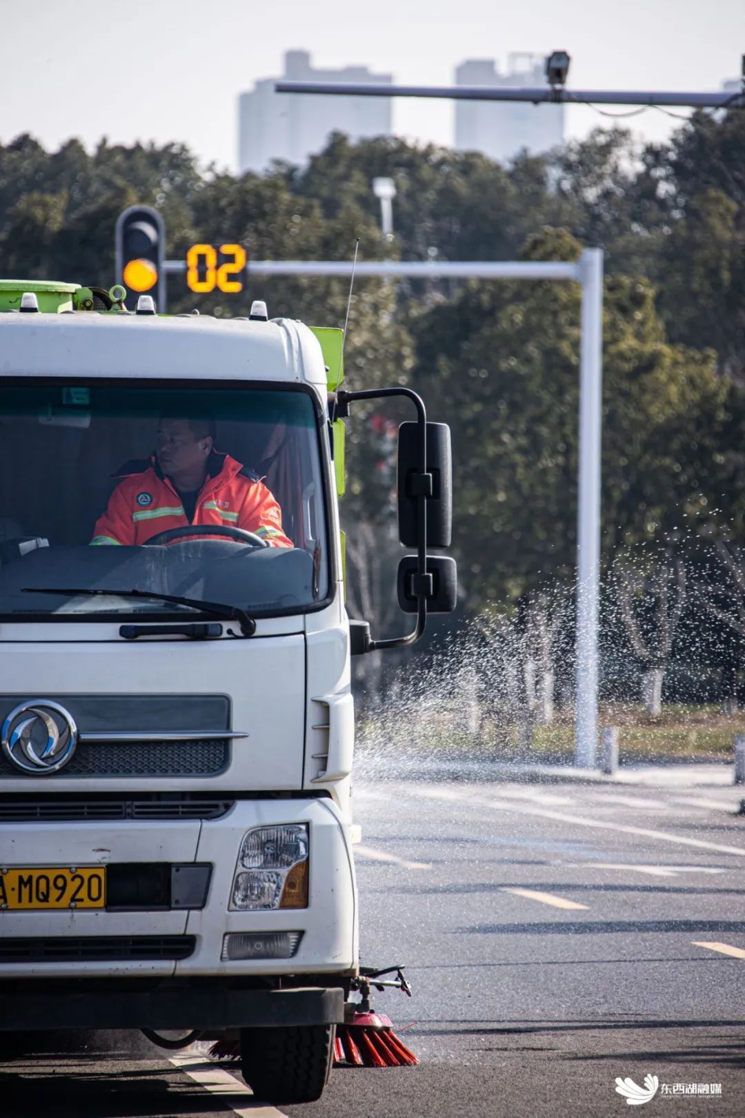 “水压得控制好,压力不够就不能起到冲洗的效果。最主要的,得避免水洒到行人。”操作洒水车半点也不轻松,黄彬需要不停地注意前后方的车辆和喷水的力度。