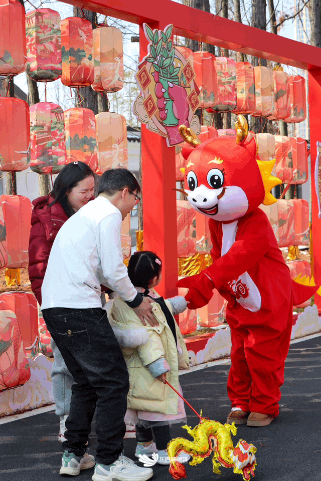 彩灯映照笑脸,幸福滋味浓。走进园区,一盏盏火红的灯笼点亮扑面而来的年味。一位身穿红色汉服的小姑娘提着一盏龙型花灯在灯笼长廊漫步,“半岛庄园过年氛围很好,我特意给女儿穿上汉服,来这里拍一些过年照片。”吴女士一边与记者交谈,一边不停地按下快门为女儿拍摄新年写真。