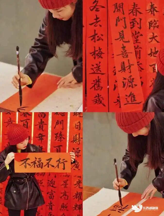 “江山故国堪留鹤,华夏昊天可跃龙。” 年俗摊位前,半岛庄园的游客们摊开春联、压上镇纸、挥毫泼墨,将真诚的祝福付诸笔端。“亲手书写春节对联,既有传统文化底蕴,又能讨个好彩头。”彭阿姨将写好的春联小心翼翼地叠好,准备带回家。时序轮转,丹心永固,春联始终是中国人过年必备的瑰宝。