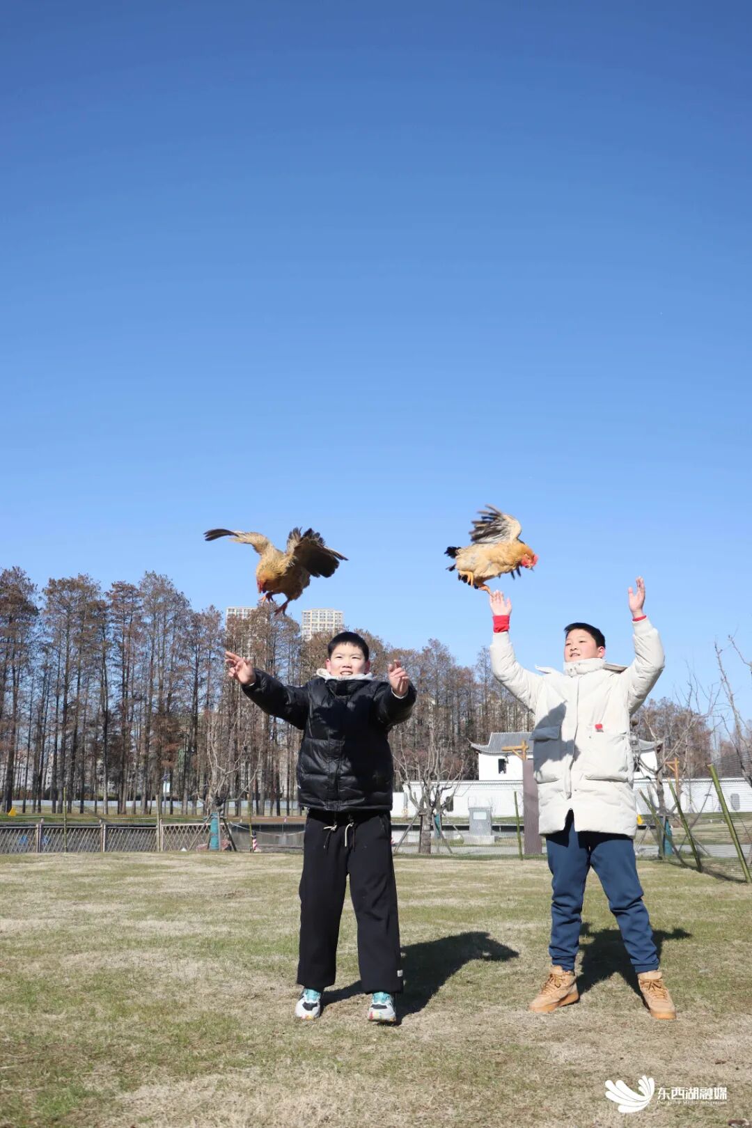 在湖边草地,一群孩子们尽情撒欢,追赶土鸡,体验父辈童年的春节回忆。“太好玩了,我要把这只鸡带回去当宠物!”小朋友们兴奋地举起土鸡向场边的父母展示。据了解,半岛庄园抓年鸡活动10人一组、按组进场、徒手抓鸡,获胜者可直接拿走土鸡,参与者都能获得鸡蛋礼盒一份,寓意来年大吉大利,吉祥如意。
