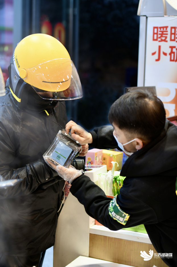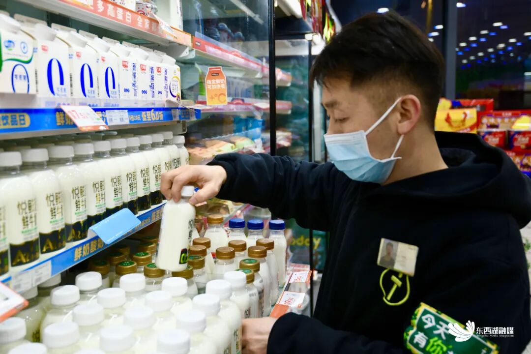 在武汉客厅园区,只有这家便利店亮着灯,为留守的人们居民带来便利。