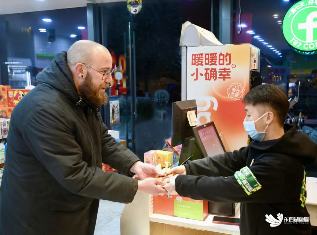 今年春节,武汉客厅内的外国雇员仍在正常上班,便利店成为他们购买日常所需的加油站。“他们习惯在深夜购买饮料和烧烤。”陈前伟说,结完账几句“thank you”让他在略显冷清的深夜不再孤单。