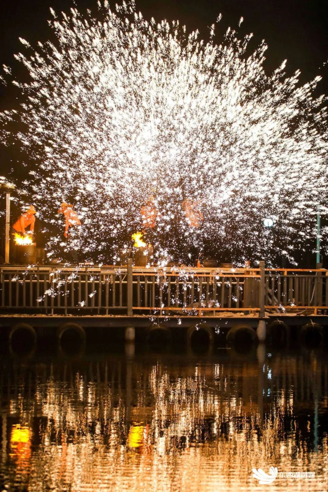 此外,“金花祈福”非遗打铁花表演火花四溅,宛如绽放的金色花朵,为新春佳节增添无尽的喜庆,与游客共同分享美好的新年祝福。