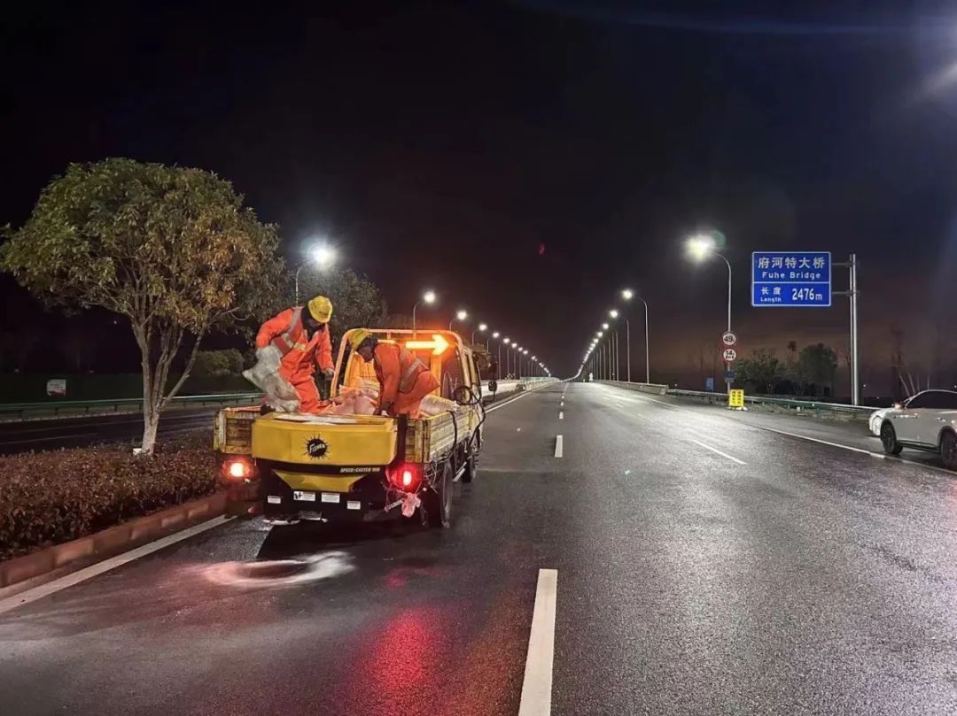 全面巡查管养道路桥梁,对重点道路、桥梁进行预撒融雪剂处理,确保安全畅通。目前已落实铲车20台、运输车11台、撒盐车10台、雪铲2台、装载机5台、融雪剂220吨、作业人员145人,全力保障107项目标段沿线、路口和管养道路桥梁安全畅通,同时做好高速公路保畅备勤工作。
