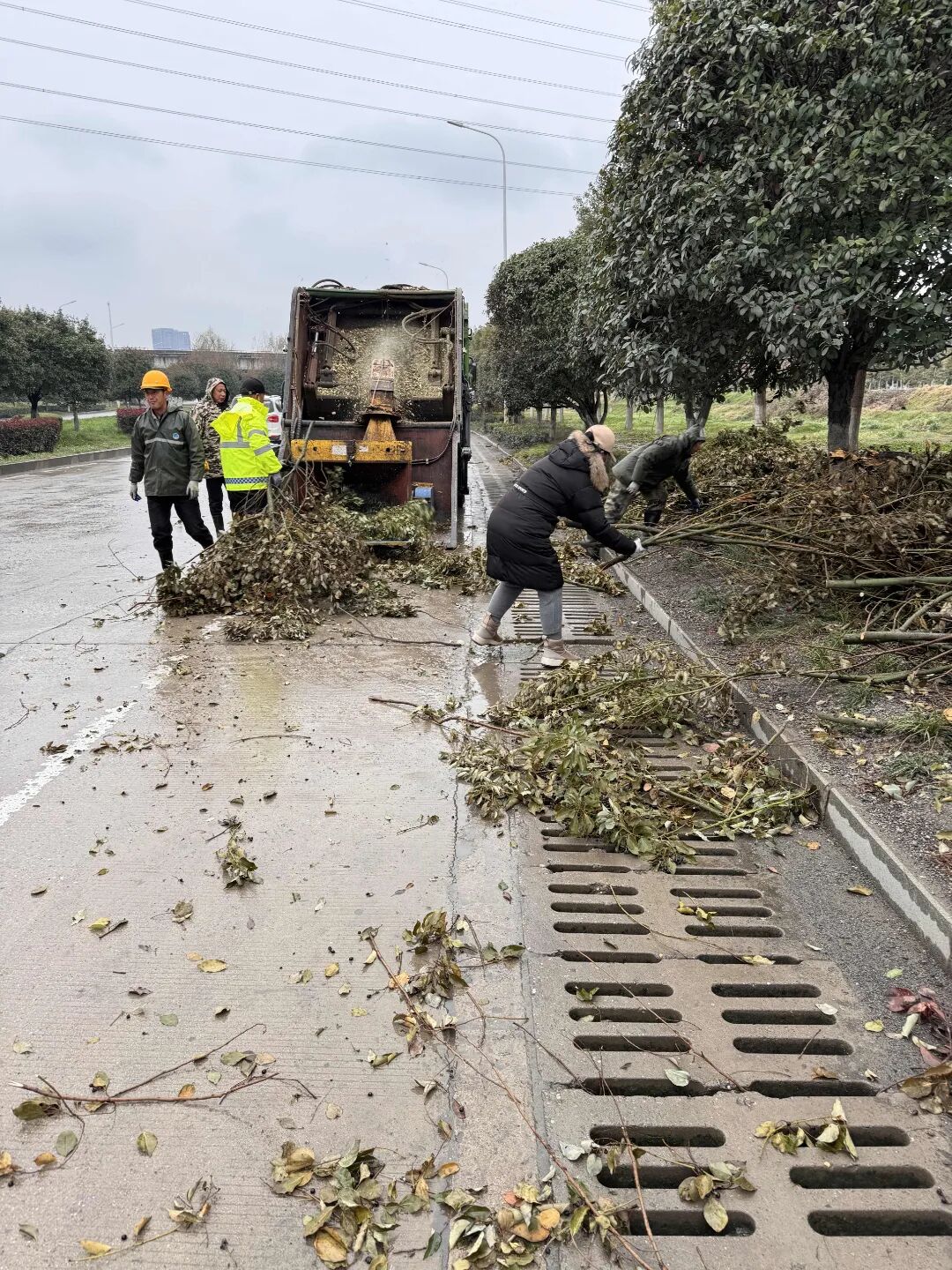 组织园林应急作业,排除悬空断枝等安全隐患,出动压缩粉碎车、升降车、农用车等车辆107台,累计投入作业人员875人。同时组建56人的应急保障队伍,落实应急油锯、高枝锯等机具512台套,全力应对低温雨雪冰冻灾害天气。