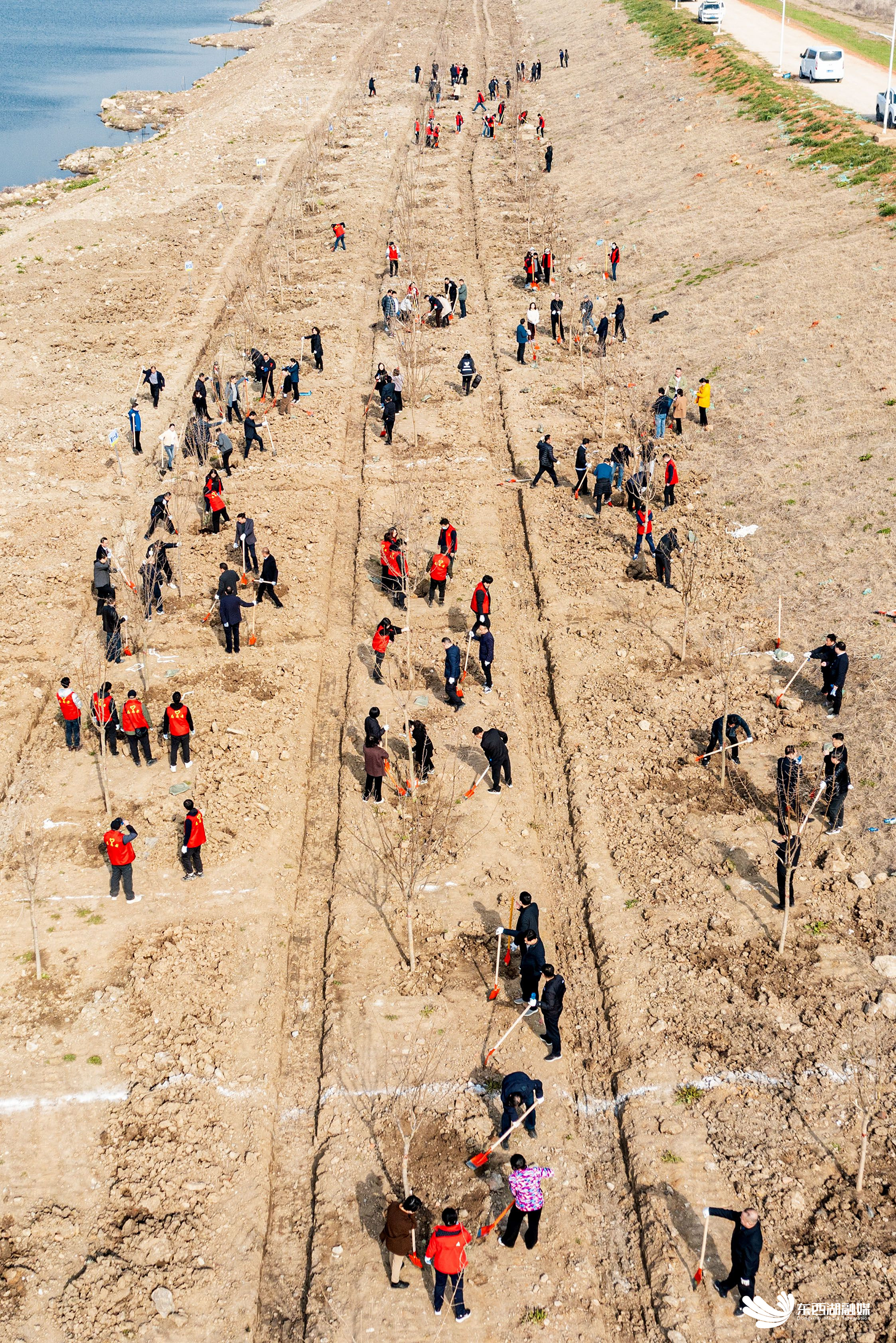 活动当天,全区各部门、街道(社管办)干部群众500余人,分别在府河东风垸围堤和西湖高标准农田中心沟植树点,栽种流苏、飞鹅槭、池杉、沼生栎四类品种,近5000株树苗。