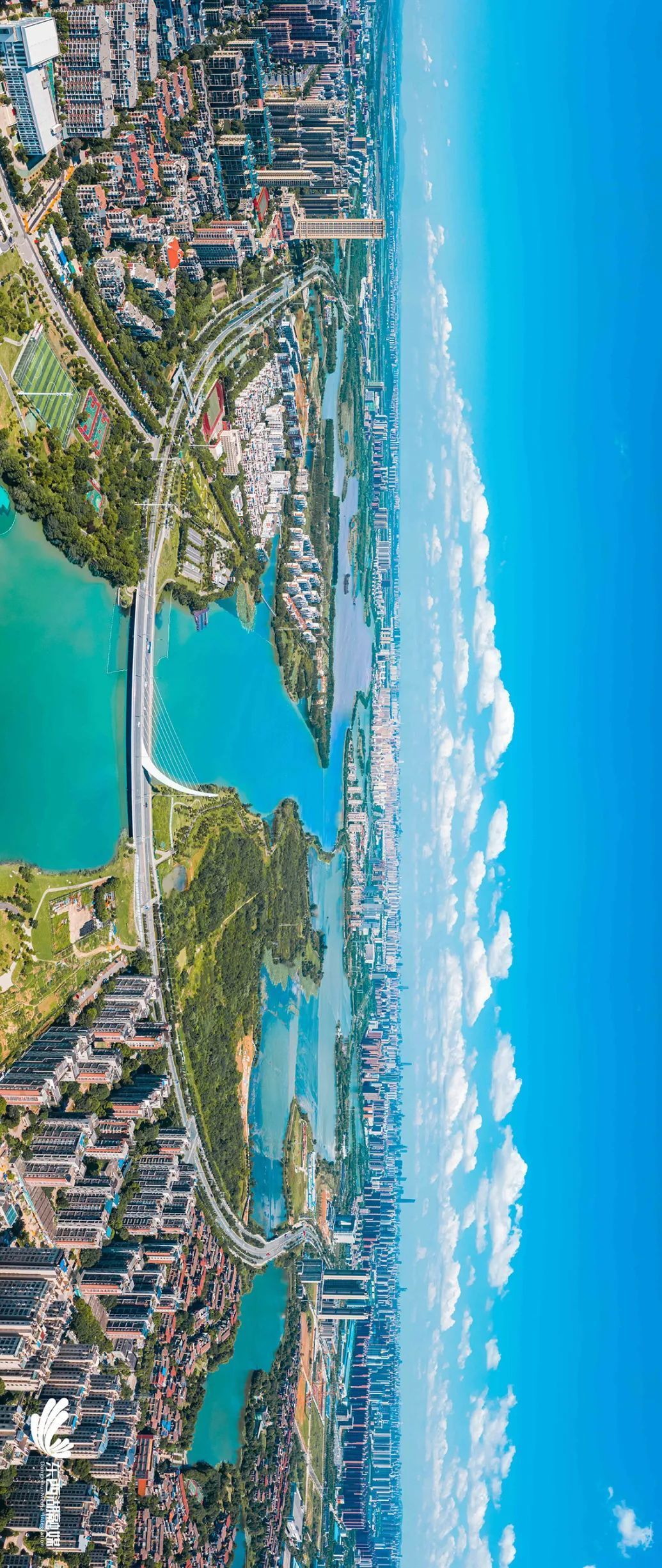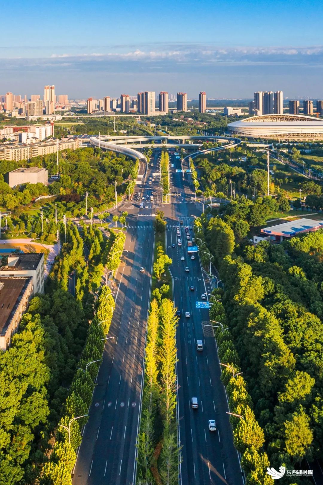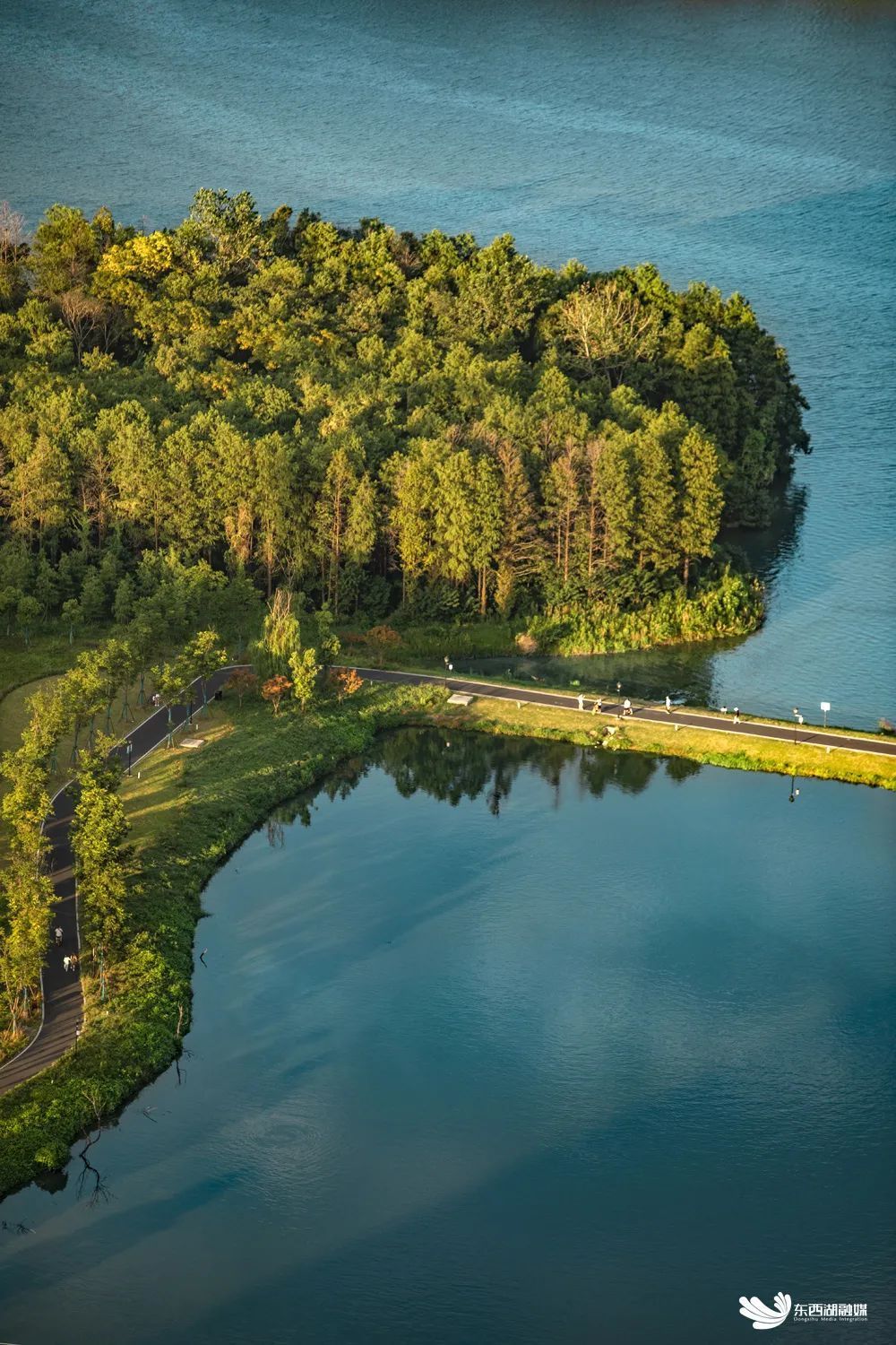大湖、大河、大园、大道......在东西湖落笔,泼墨出层次丰盈、浓妆淡抹的绿色意境,梧桐雨树林葳蕤,连绵延伸至府河堤岸,长出了镶进城市里的森林草海。