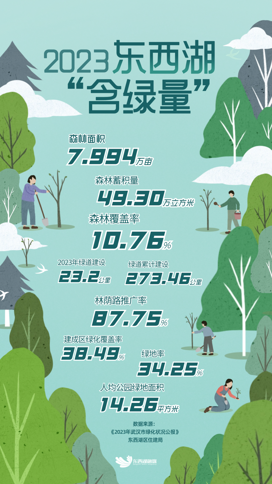 今天是第46个中国植树节刚刚,武汉市绿化委员会办公室发布《2023年武汉市绿化状况公报》《公报》,显示东西湖区森林资源存量道路绿化养护管理城市公园(绿化广场)等多项指标在全市领先。