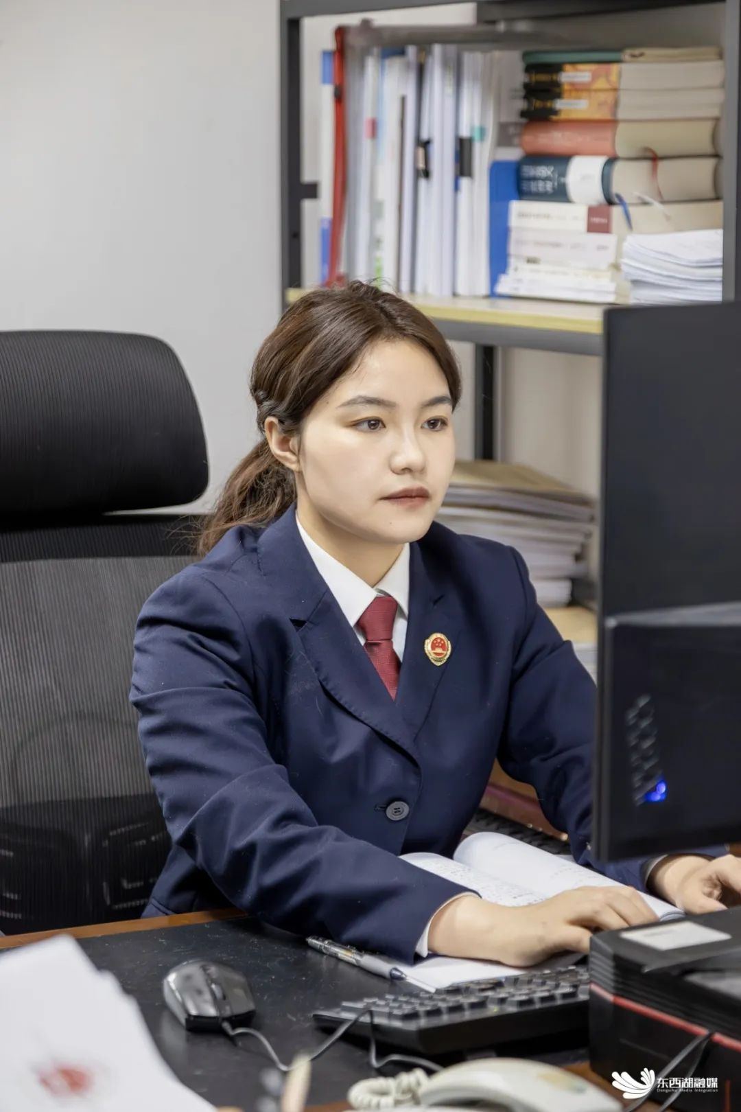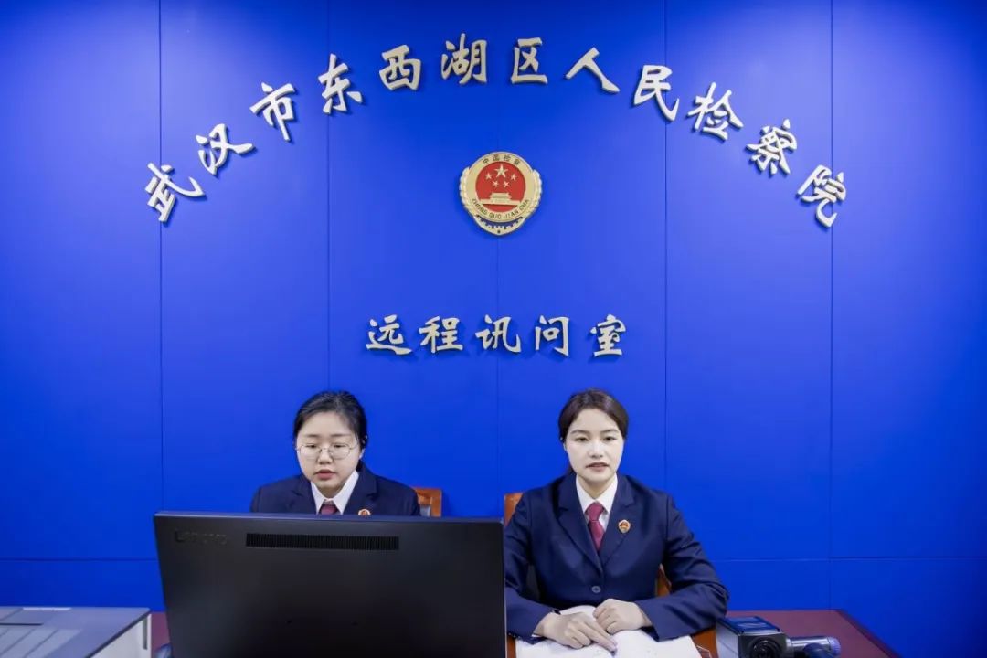 李雪莲和同事在远程审问室审问。