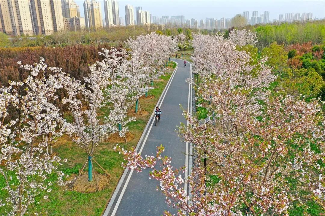 黄塘湖公园绿道以海洋元素和滨水生活为主题,巧妙串联城市绿道,为市民打造集休闲、娱乐于一体的城市水公园。湖畔点缀的400余株樱花树,成为公园一大亮点。