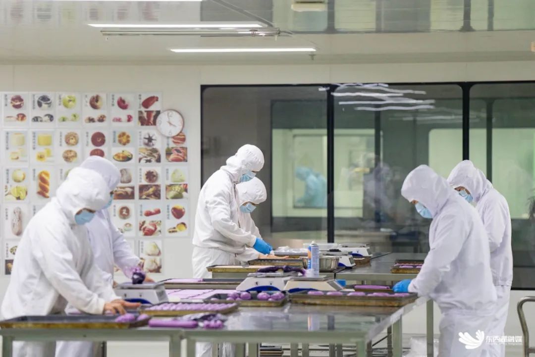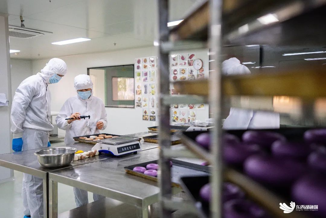 让人眼前一亮的是,区别于传统食品企业生产车间,播鲜生是一座开在直播间里的全透明的烘焙面包坊。二楼静态万级、动态10万级的生产车间里,糕点师们纯手工制作各类面包蛋糕的生产流程,在广大网友的关注下“一览无余”。吴文迪解释道,“播鲜生”的公司名称就取自于“直播新鲜生产的食品”概念。