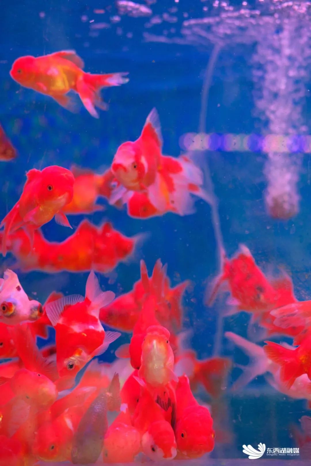 游曳的小鱼,在光影照射下游踪迷离,飘逸的鱼尾扭动出神秘弧线,让静静观赏的大孩子们得到“治愈”。有蓝紫色灯光配合,层层叠叠的鱼缸,随手一拍就是《重庆森林》里的魔幻场景。