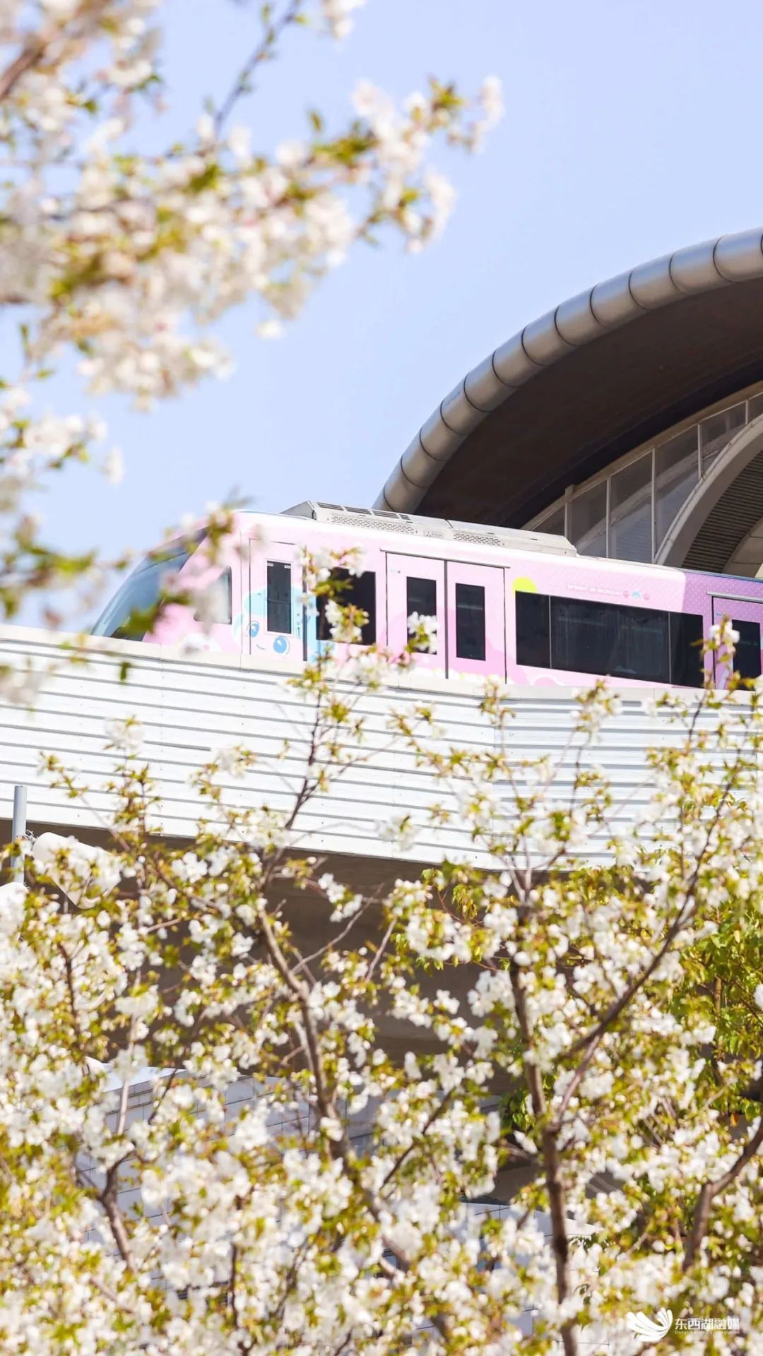 樱花地铁穿行花海。