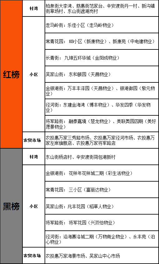 东西湖区生活垃圾分类办 发布履行生活垃圾分类管理责任红黑榜 ↓ 根据《武汉市生活垃圾分类管理办法》中规定的责任义务,结合实地检查结果,2月份全区履行生活垃圾分类管理责任情况“红黑榜”如下: (来源:东西湖区生活垃圾分类办)