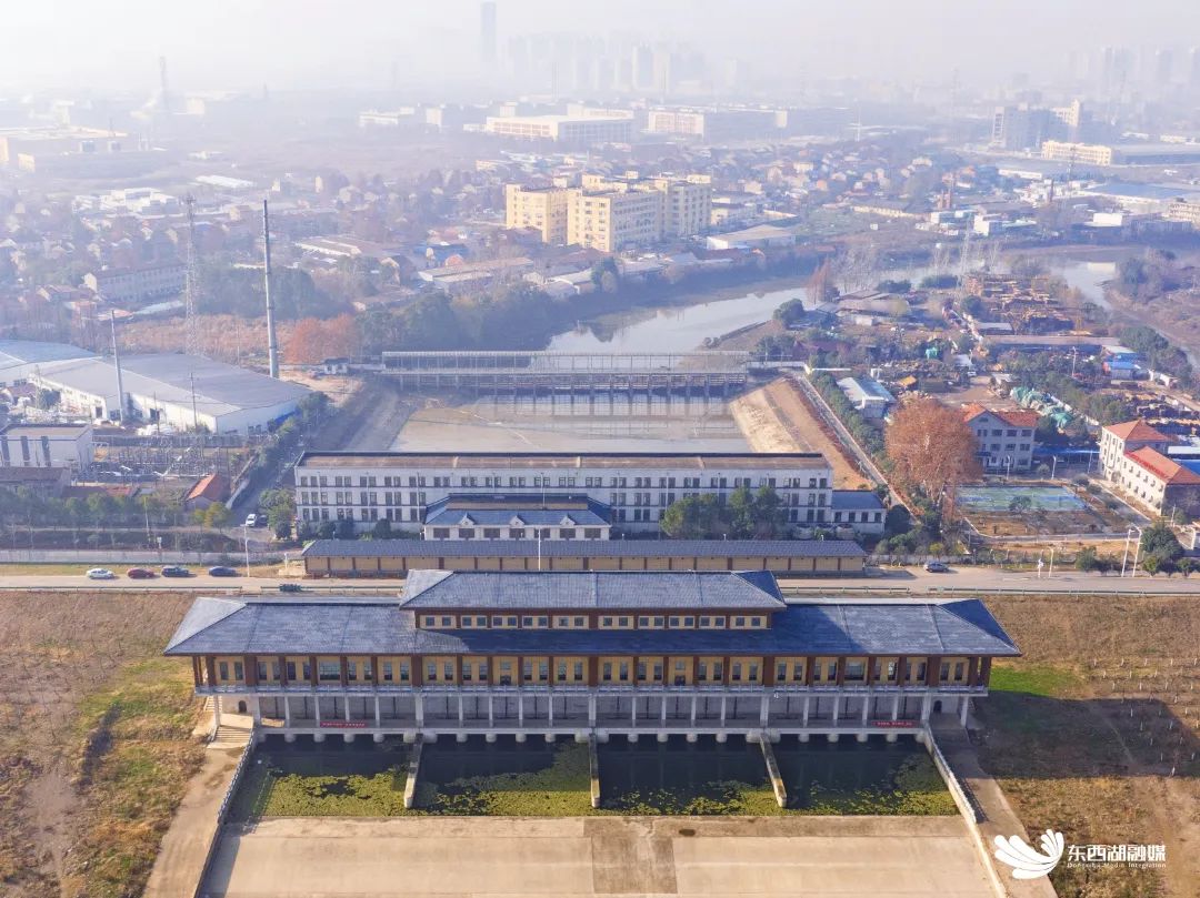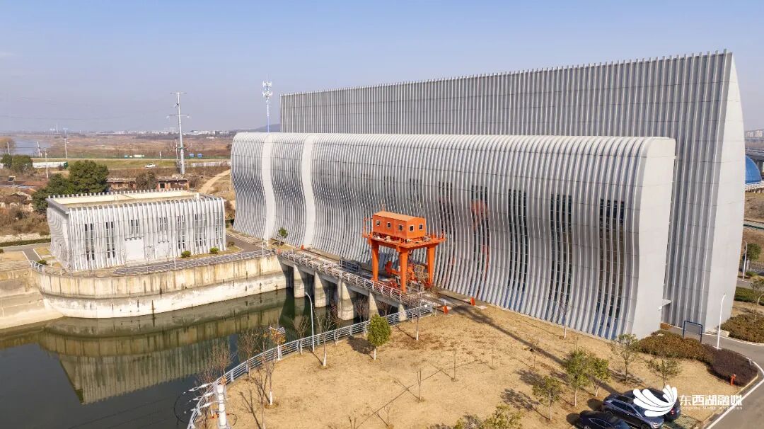 从天河国际机场自驾进城,在东西湖大堤处可以看到一组极具现代科技感的帆形建筑——这就是东西湖建设年代最久的泵站——李家墩泵站及排水闸。