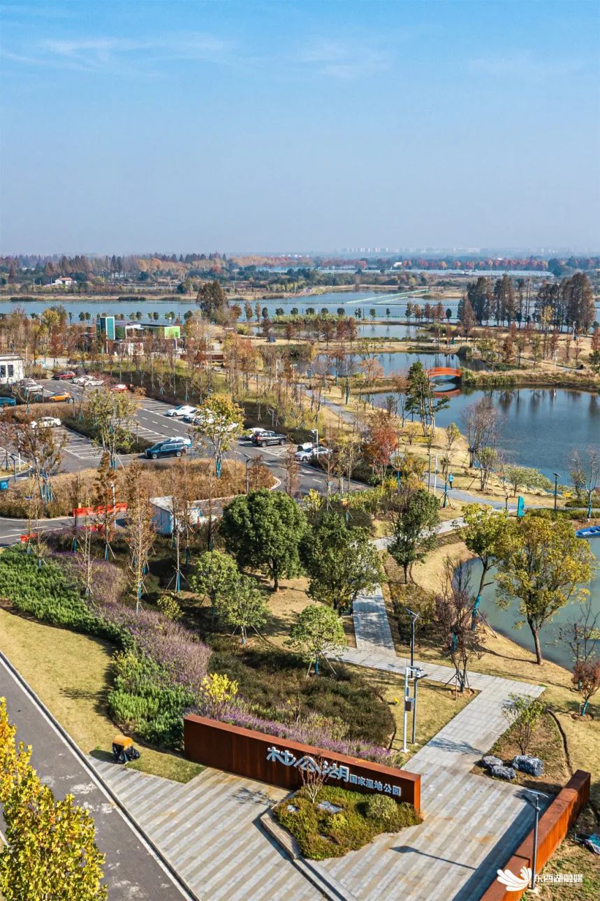 林带与水泽交相辉映,新晋“国”字头的杜公湖国家湿地公园有着层次丰富的“野生湿地”肌理。