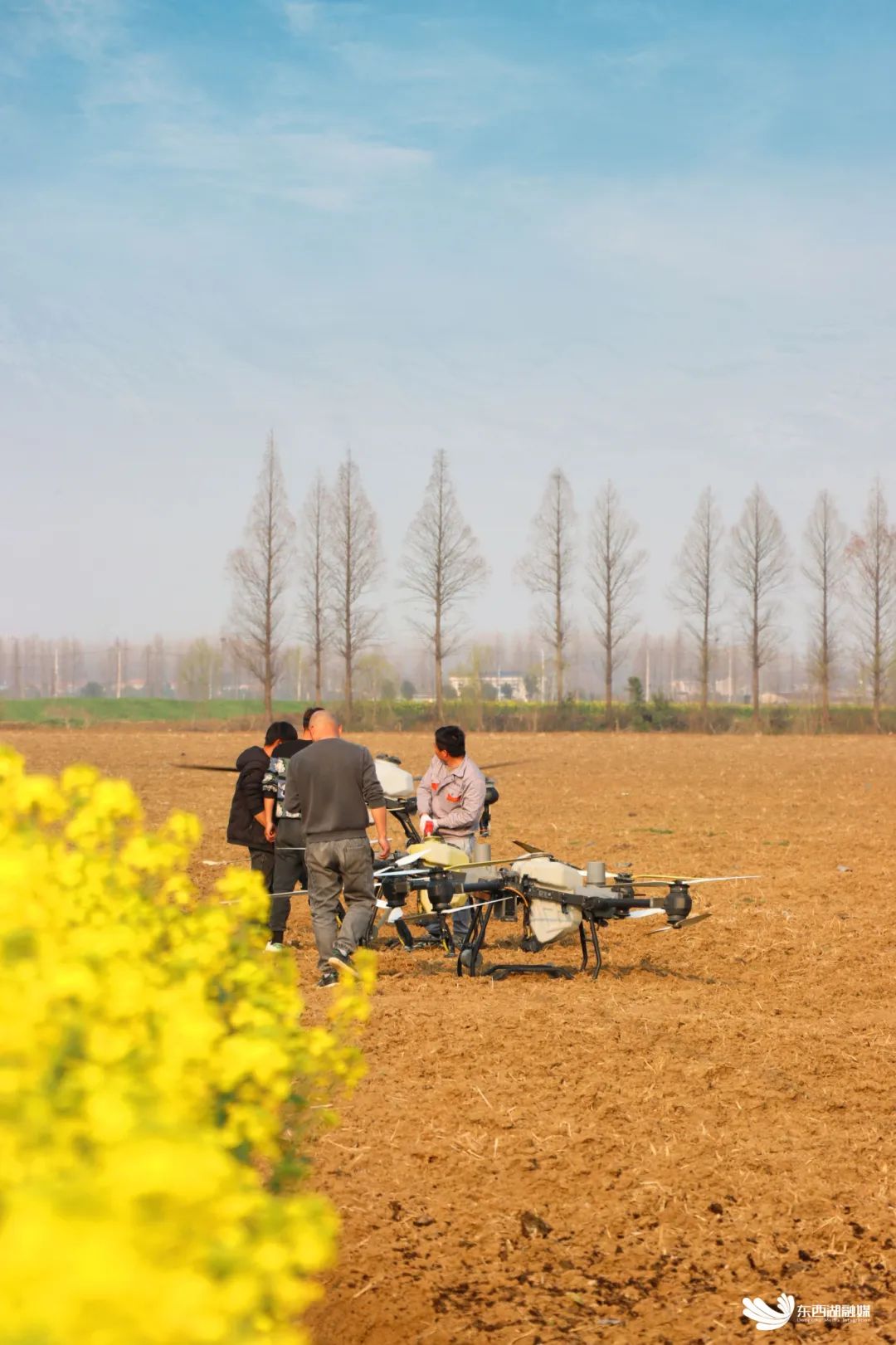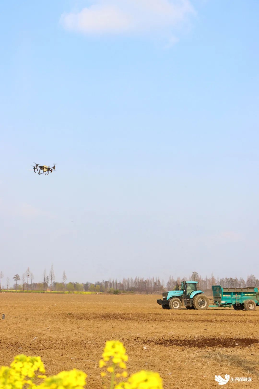 无人机和各种农机协同备春耕。