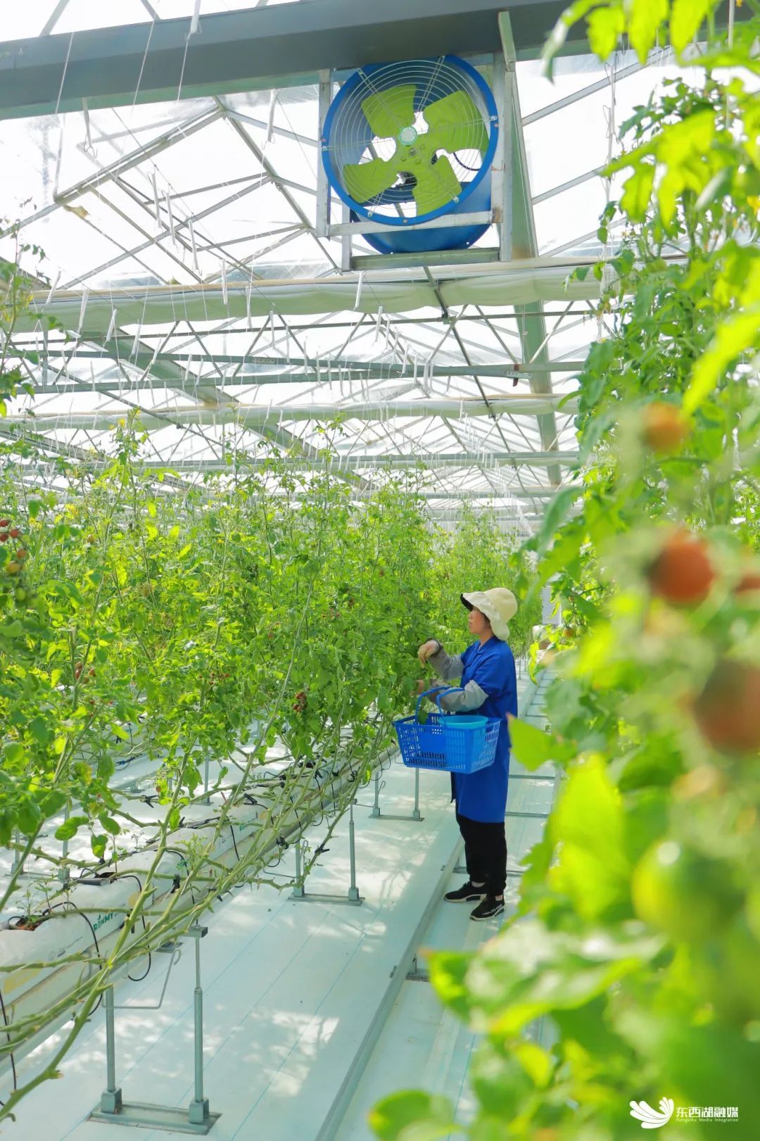 小番茄则依靠“落蔓”种植工艺,实现“无限生长”,藤蔓可不断攀爬,结出新的果实。“我们最长的一棵有40多米,能更好应对各种极端问题,保障生产不间断。”