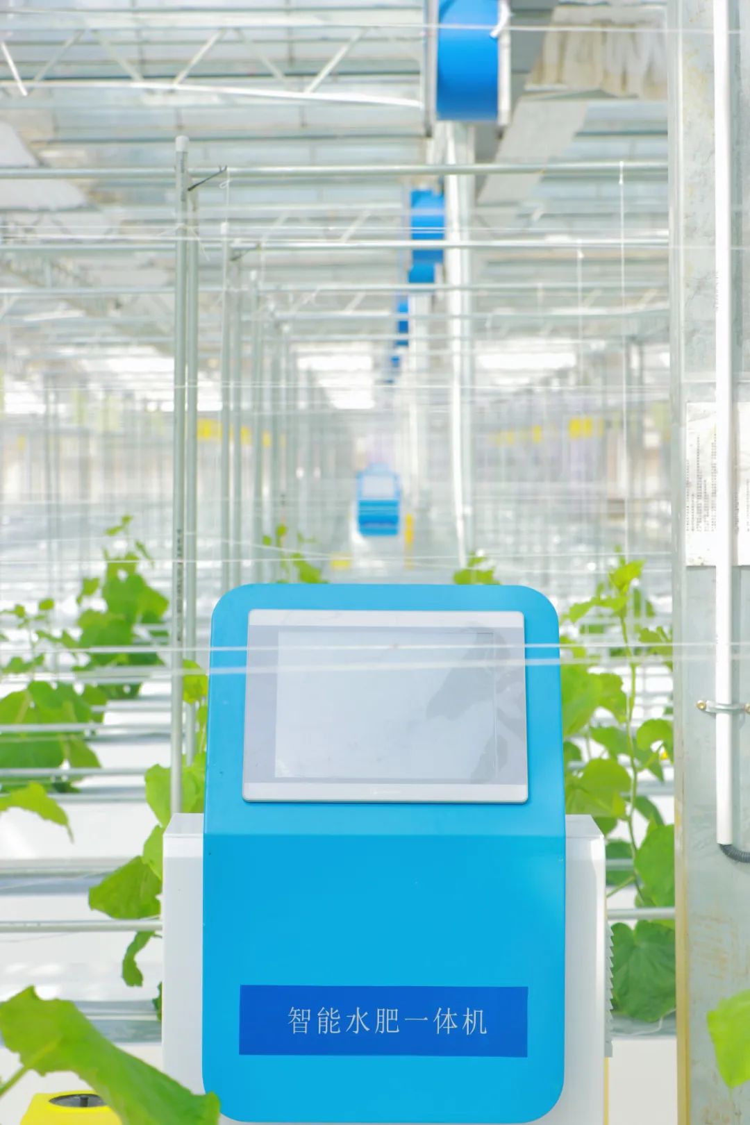 黄瓜棚内的智能水肥一体机。