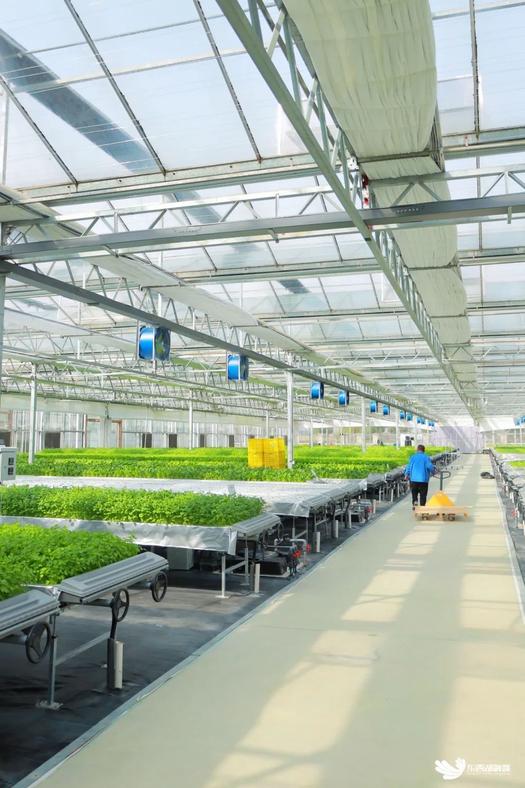 周小兵介绍,今年植物工厂整体进行智能化升级改造,增加更多自动化设备,可根据外部的天气和棚内的温度、湿度综合判断,自动完成开窗通风、遮阳防晒等工作,促进植物更好、更快生长。