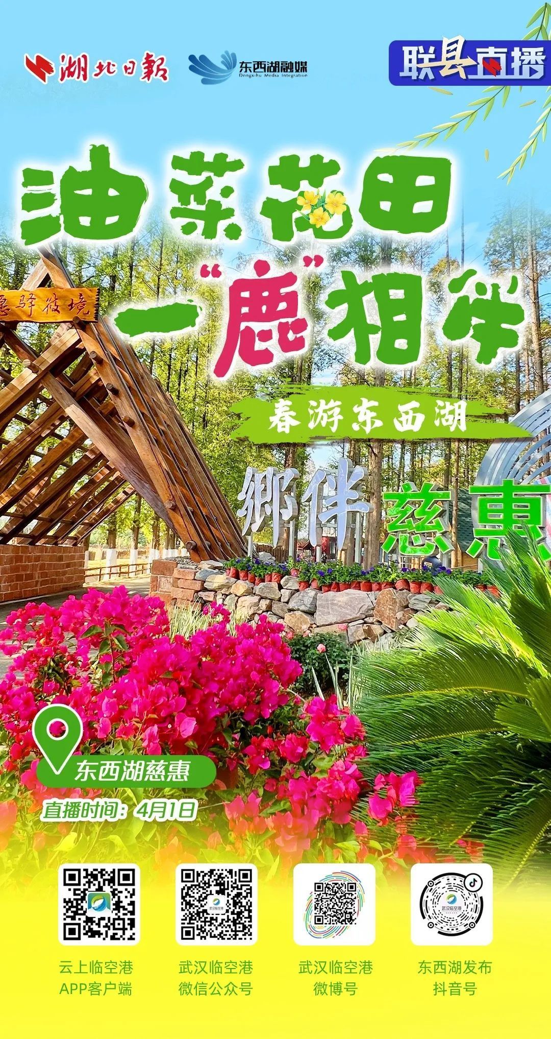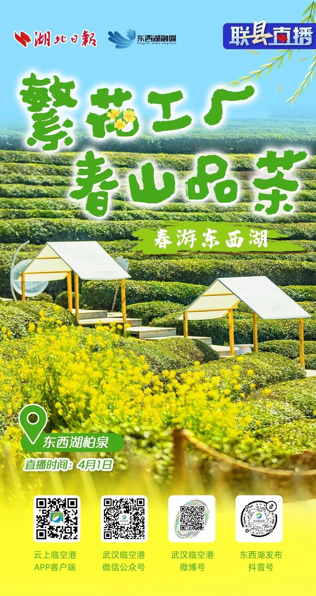 4月1日上午10点,东西湖融媒记者将带着大家到油菜花海里漫步踏青,上春山采春茶!