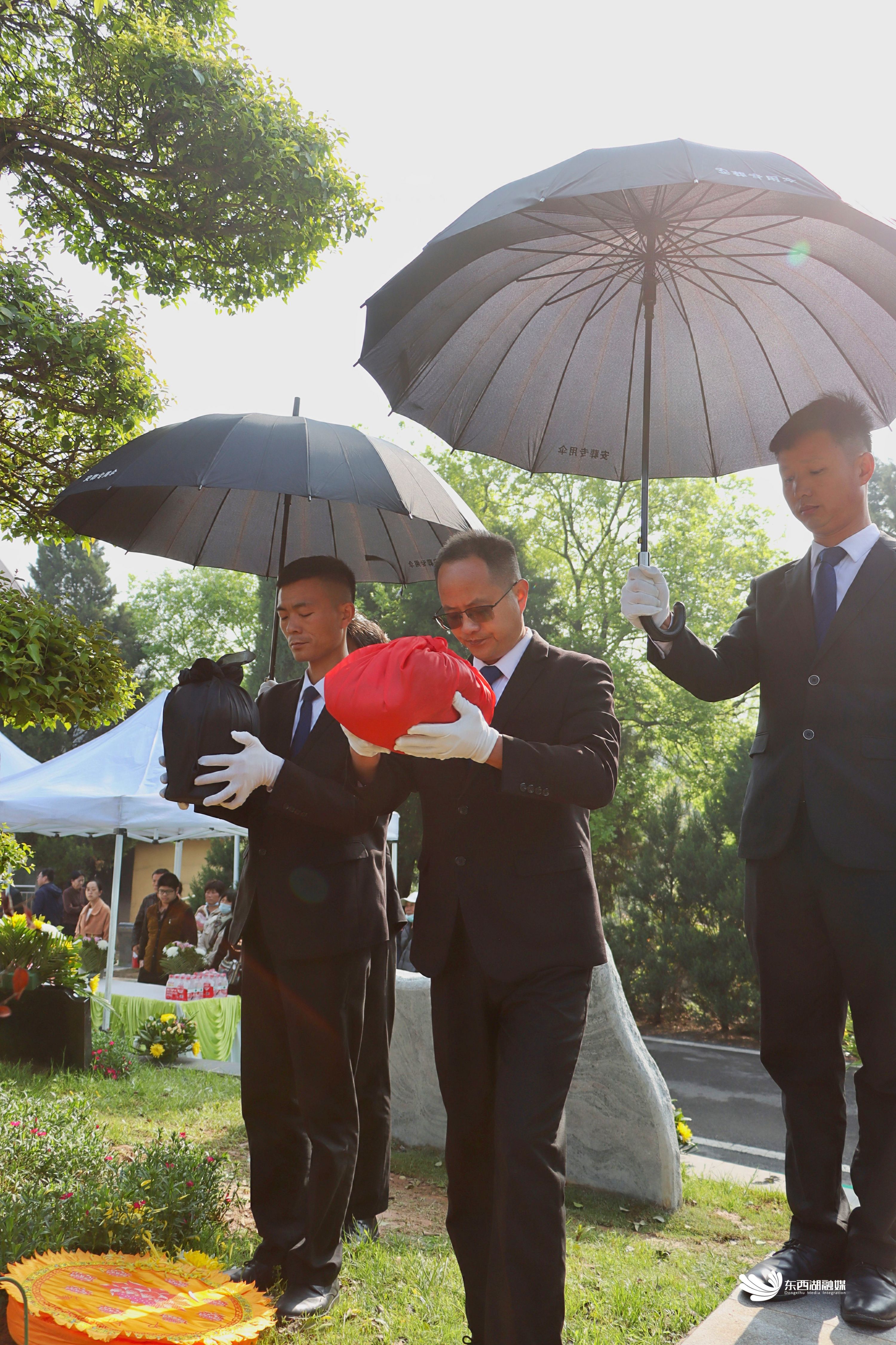 4月3日,东西湖区农投集团睡虎山人文纪念公园举行免费集体花坛葬落葬仪式,5位逝者以花坛葬的形式回归自然,入土为安。