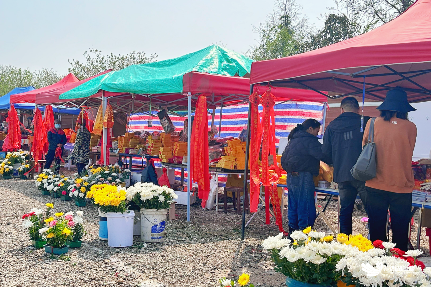 睡虎山公墓祭祀用品市场(西停车场)便民摊位有序摆放。