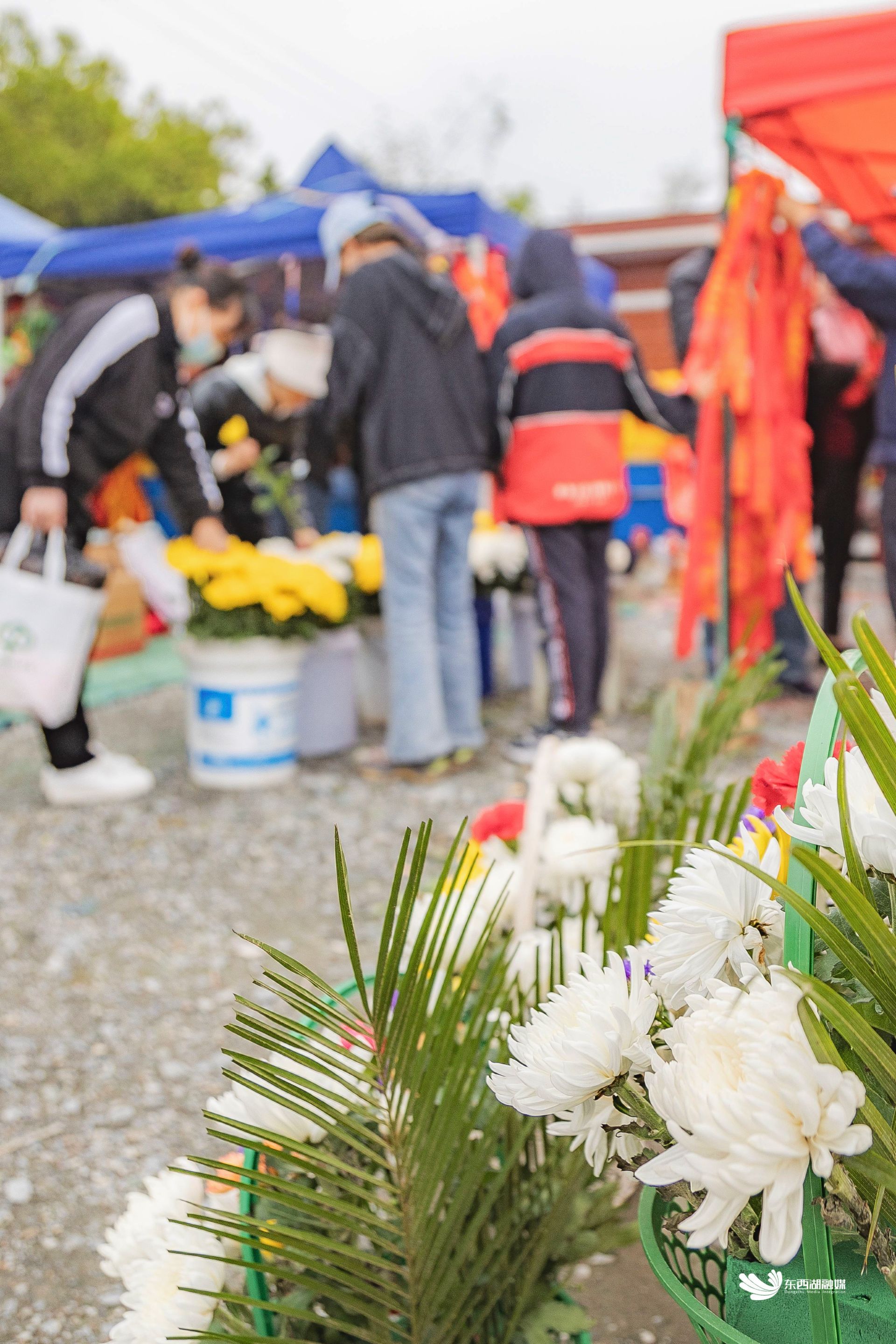 市民入园祭扫前购买鲜花。
