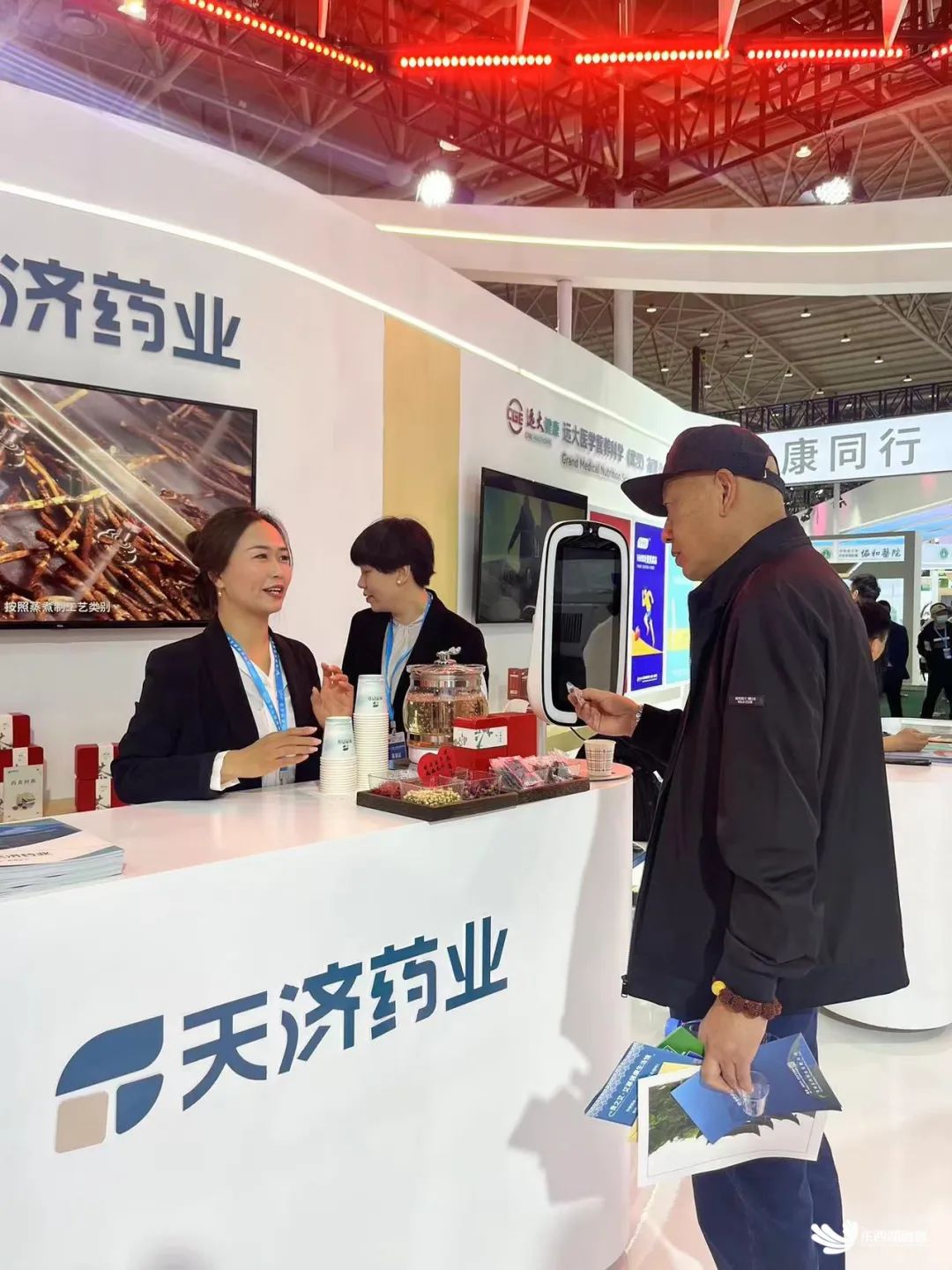 2024年世界大健康博览会主题为“健康共同体 科技创未来”,展出面积10万平方米,参展商1000余家,东西湖展区位于A2健康湖北馆主通道入口。在科技感十足的“飞机引擎”中央造型点缀下,湖北天济药业、武汉润禾生物医药、武汉太福制药、远大医学营养科学(武汉)、武汉迪艾斯科技等5家企业展台两向排开,展示出“武汉临空港 健康芯引擎”的格局与愿景。