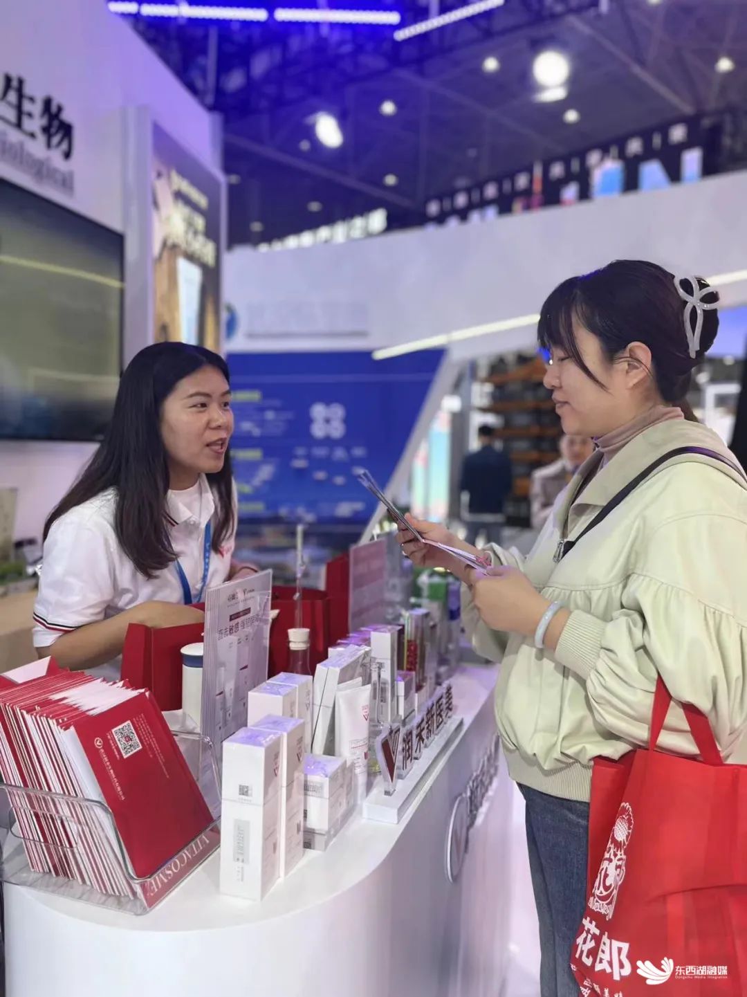 在武汉润禾生物医药展台前,市民刘女士对新推出的A醇产品很感兴趣。“我用过谷幽兰护手霜。”刘女士表示,她关注武汉润禾生物医药维生素护肤品很久了,特意来展区试用购买。