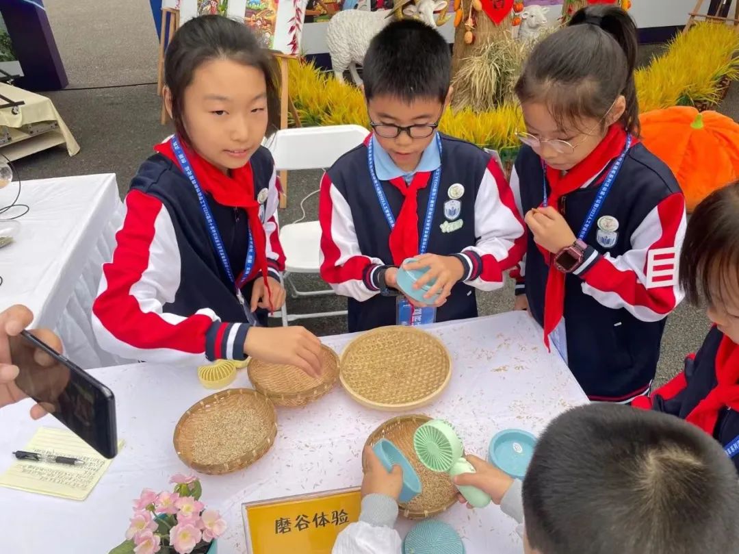 孩子们化身“小农人”磨稻谷。