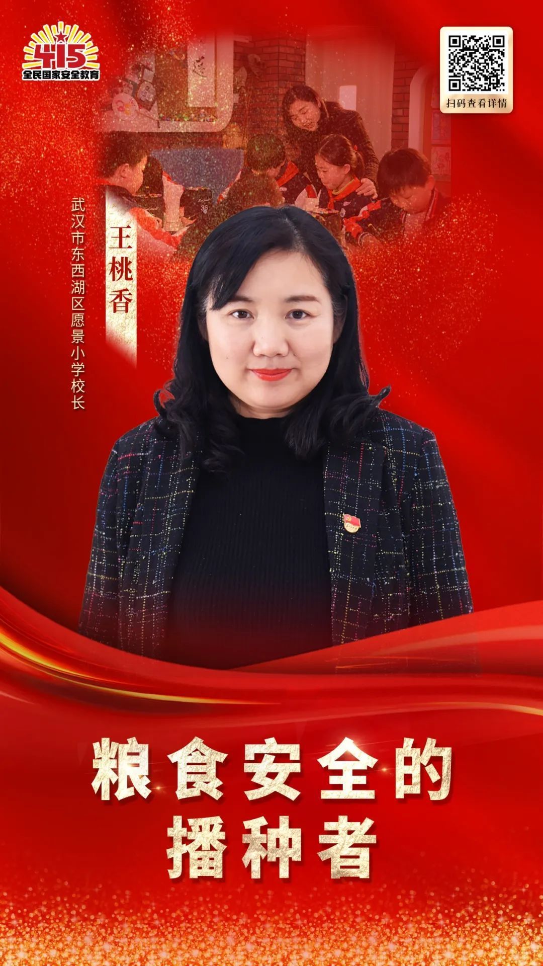4月15日是全民国家安全教育日,日前,武汉市发布2023年10位守护国家安全代表人物,东西湖区愿景小学书记兼校长王桃香榜上有名。