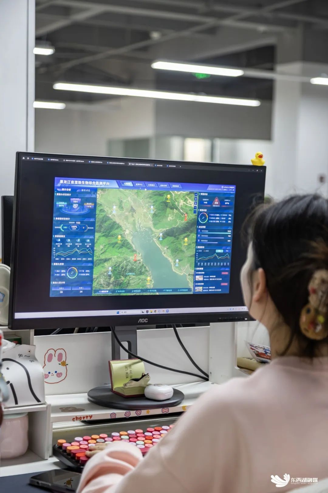 湿地生物监测、水利防汛监控、智慧化工应用管理……走进展盛科技办公区域,图像算法工程师聚精会神对数据做预处理和分析,在后端监测全国范围内的公司项目。