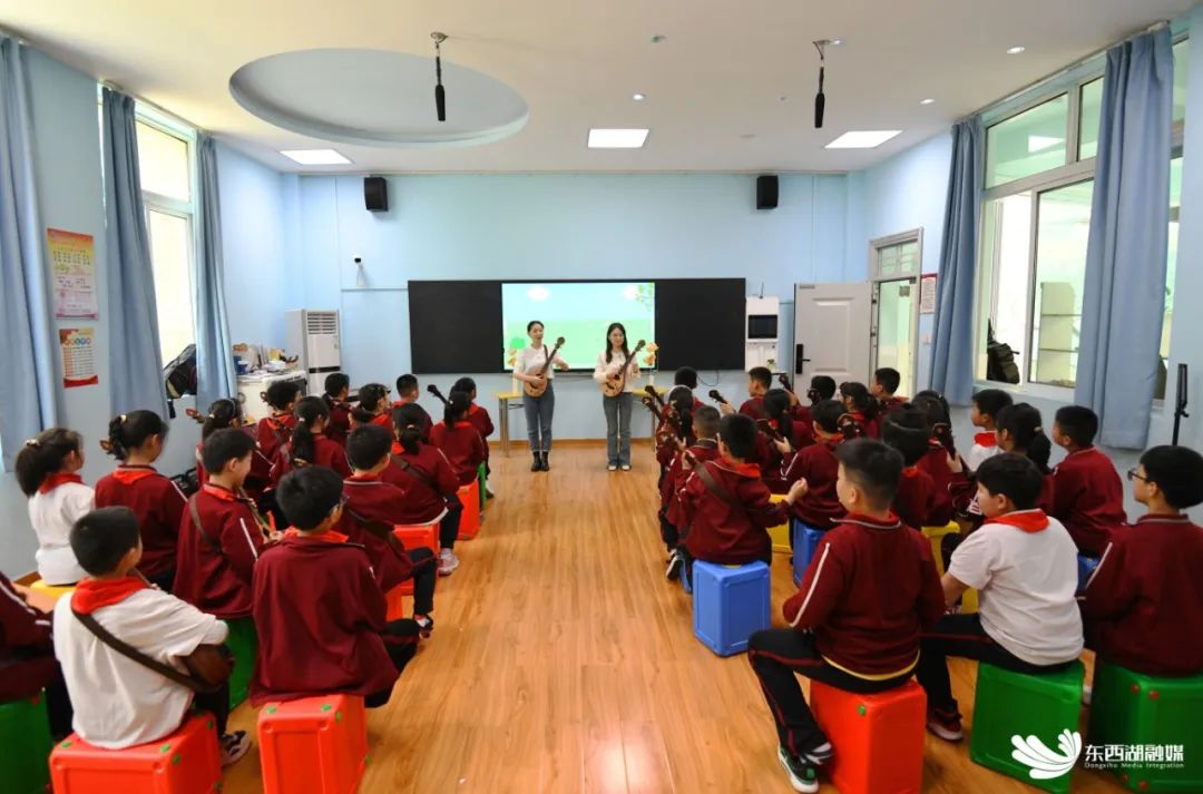 “这门课真的很棒,两位老师的教学生动有趣,还有小游戏增加互动,让我学到了很多。”三年级二班的学生余晨希激动地说,她从一年级开始接触四弦琴,今后将努力成为一名优秀的琴手。