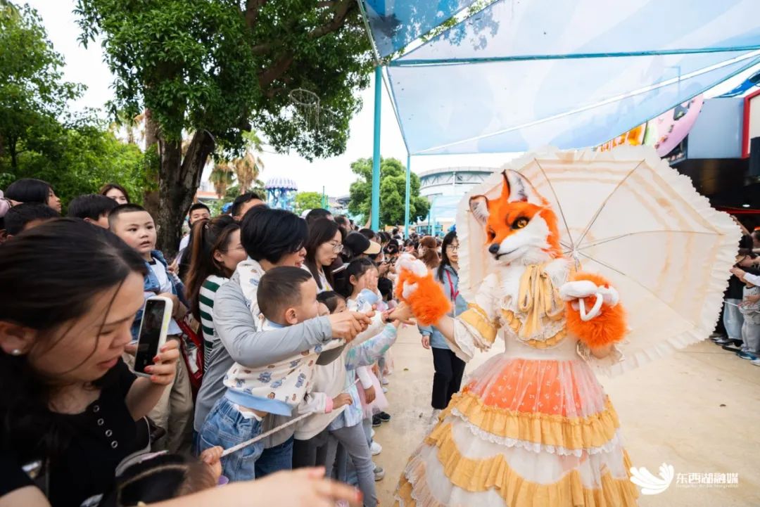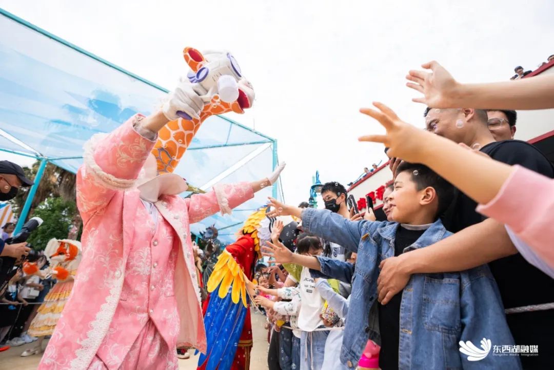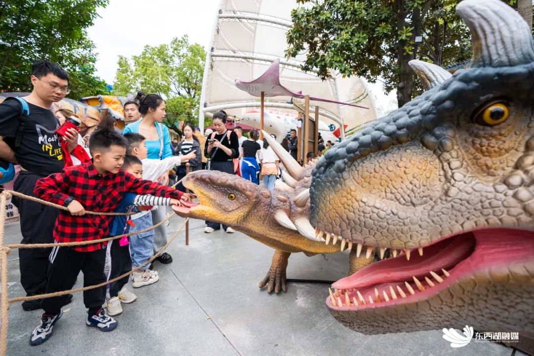 拟真动物主题互动巡游人偶剧吸引了众多游客前来观看互动。