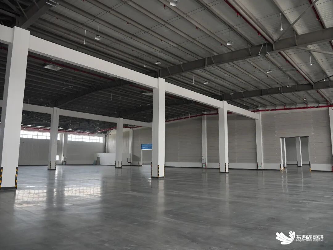 仓库屋顶采用工字钢结构,具有强度高、抗震性能好、使用寿命长等优点。地面采用金刚砂耐磨地坪,光感好、耐磨度高,防止起灰起尘。