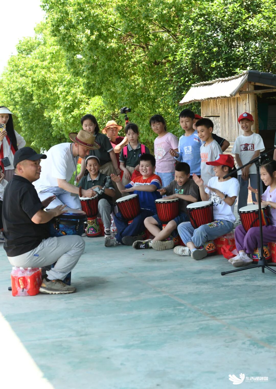 活动期间,来自东西湖区图书馆、区文化馆的志愿者们孩带来了绘本故事互动游戏和非洲鼓互动,为这场研学之旅增添了不少趣味。