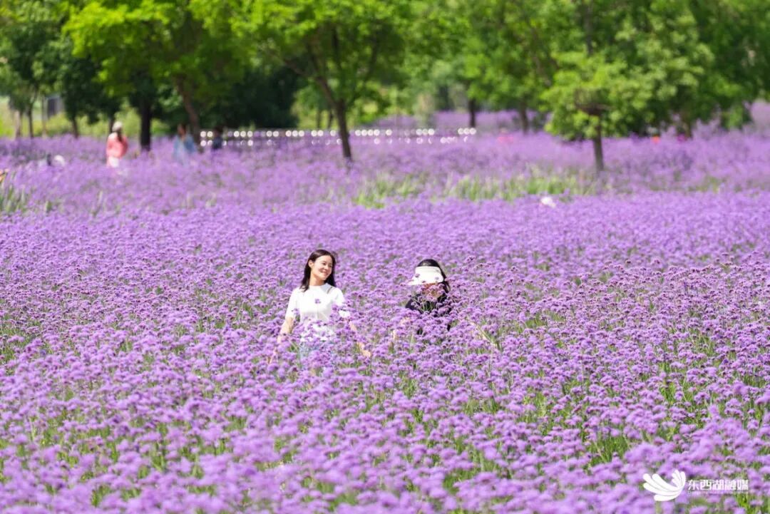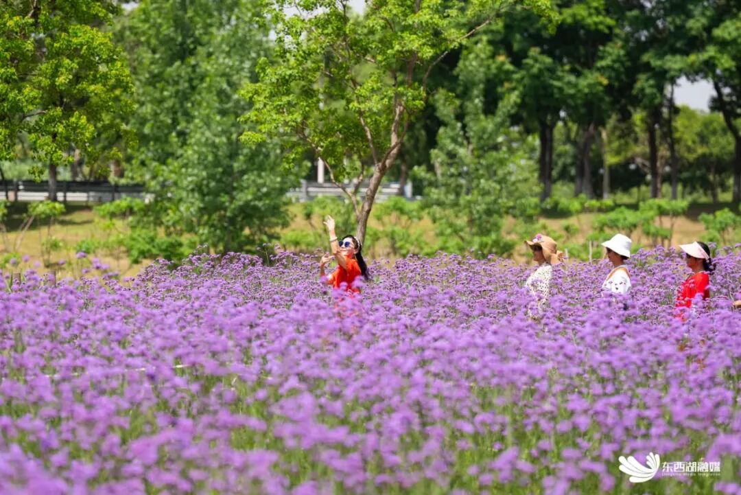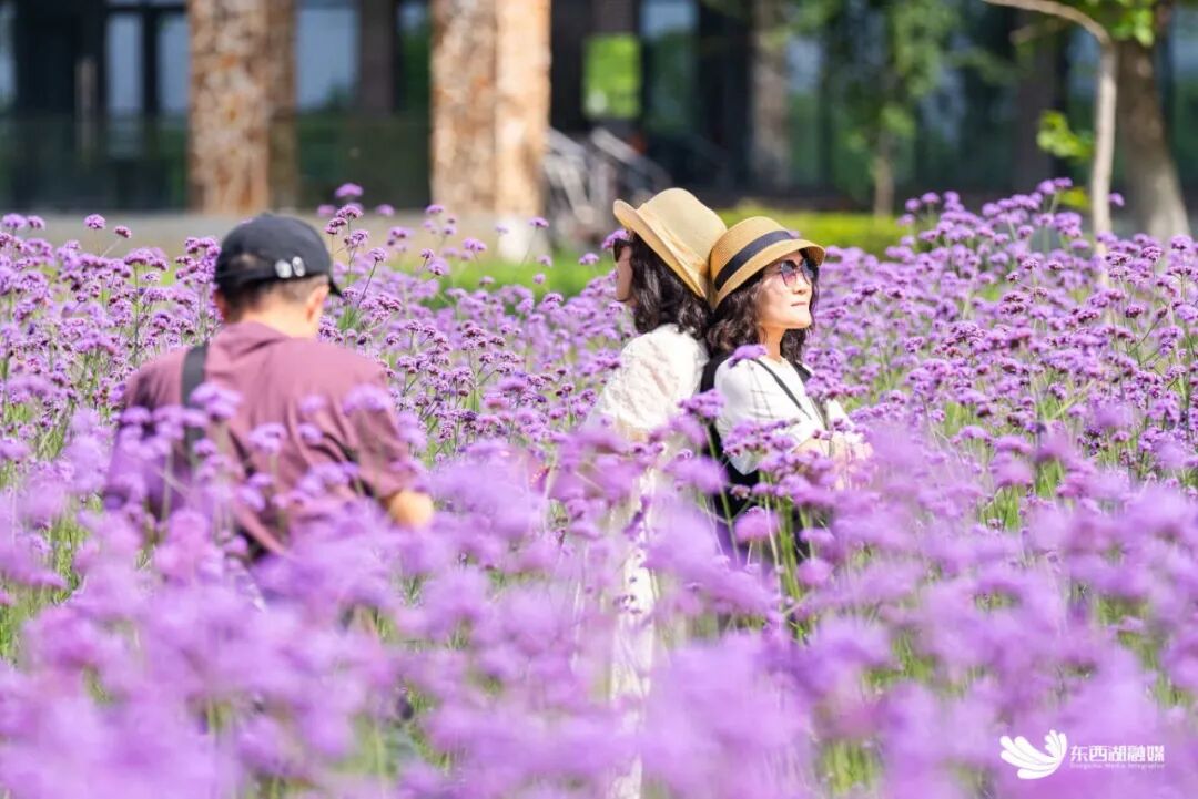 园内柳叶马鞭草种植面积超过8万平方米,主要集中在临空港大道东侧径河公园中央区域双花驿站周边。与往年观花体验不同的是,今年,花海新建了步道,市民可穿行在花海中打卡拍照。花海步道上,设有座椅以供休憩。