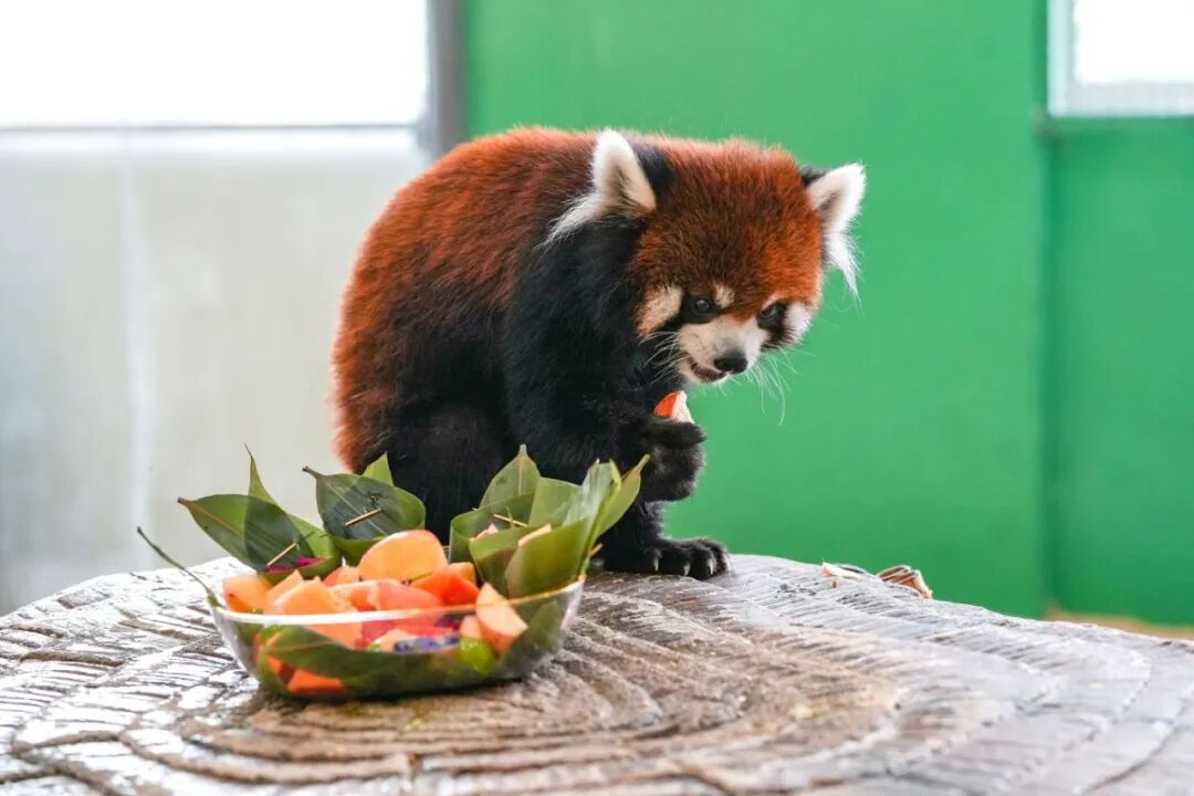 瞧!北极熊品尝着甜蜜蜜的“水果粽”,一脸满足;海豹享受着鲜嫩可口的“鱼肉粽”,津津有味;还有小熊猫,咀嚼着特制的“水果粽”,萌态尽显!