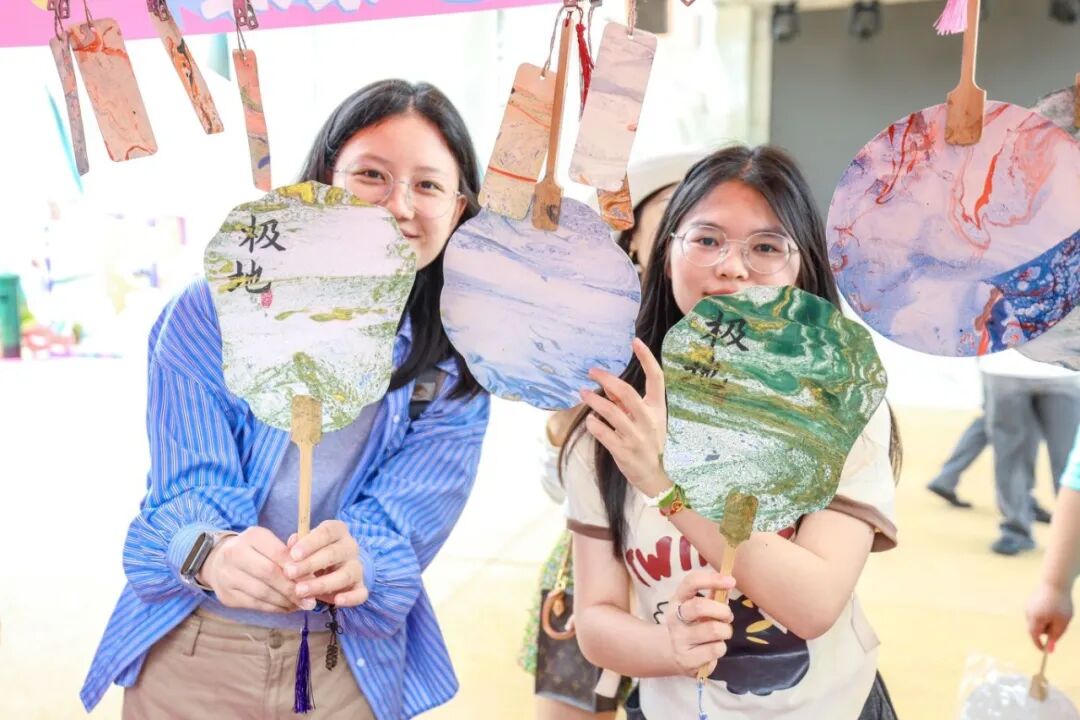 “真是太有趣了。”家住汉阳的朱玲带着女儿前来体验。在非遗集市互动体验区,游客们围在桌前,用心绘制着属于自己的漆扇。朱玲迫不及待地拿起画笔,蘸取颜料,开始在扇面上勾勒图案。时而轻描淡写,时而浓墨重彩,每一笔都认真而专注。她的女儿也在一旁跃跃欲试,小心翼翼地在扇面上添色。