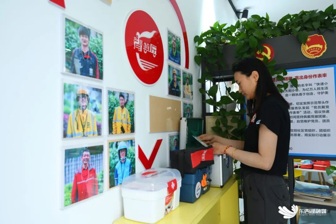 “驿站每年5到8月开放‘爱心冰箱’,爱心企业和商家捐赠瓶装水,居民志愿者熬绿豆汤,向新就业群体免费供应。”团结社区党支部书记李博介绍,社区的江城驿站是2021年建起来的,除了“爱心冰箱”,紧急医药箱里还备有风油精、藿香正气水等防暑物资和药品。
