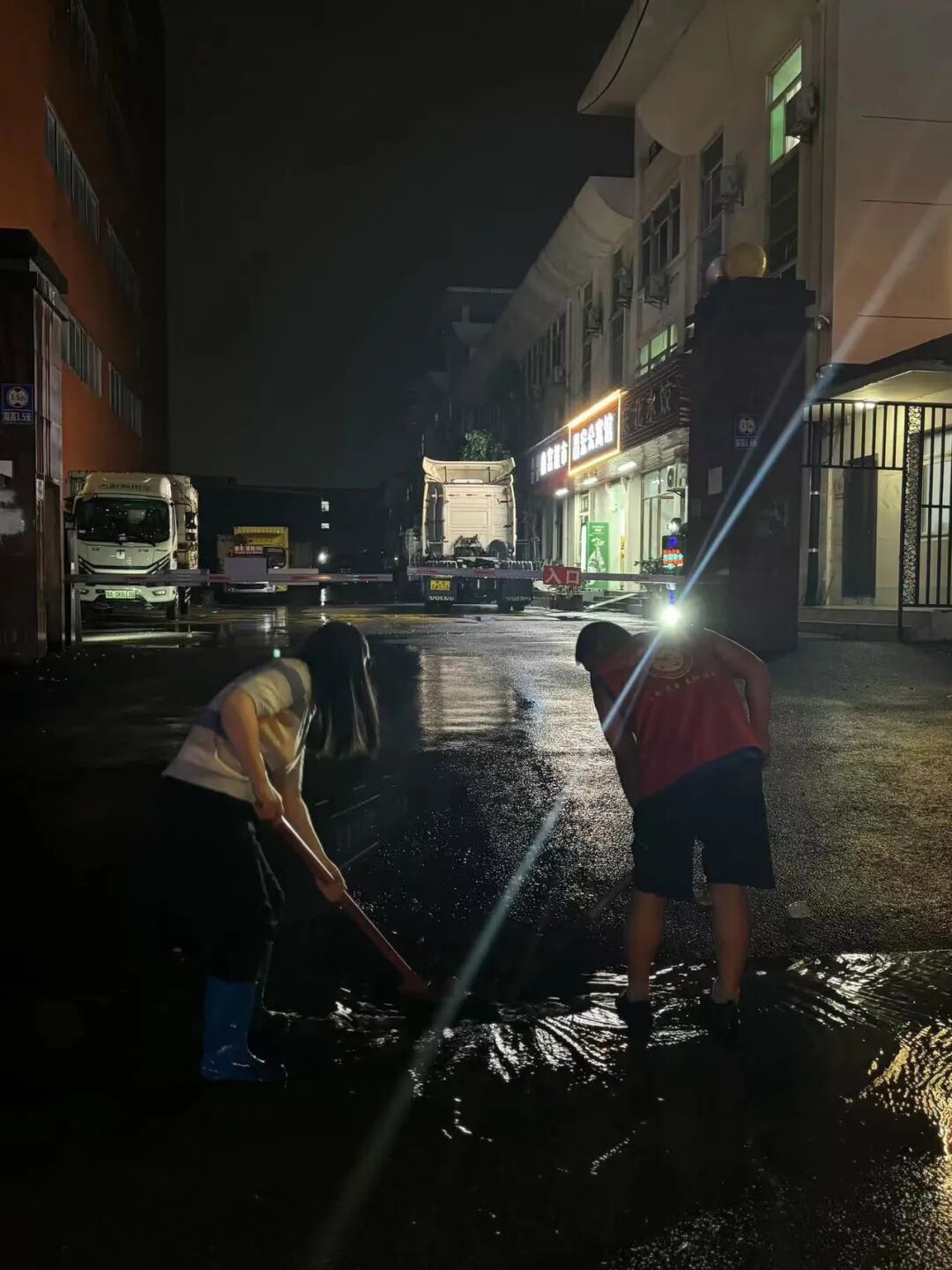 长青街祥瑞物业支委与项目部经理第一时间对四个还建小区、两个老旧小区楼顶、地下排水管道等处进行排查,确认应急物资到位。小区保安在夜查过程中,对地下车库和电梯井等处进行重点排查,实时通报小区内渍水情况,确保小区内无积水,保障居民正常出行。