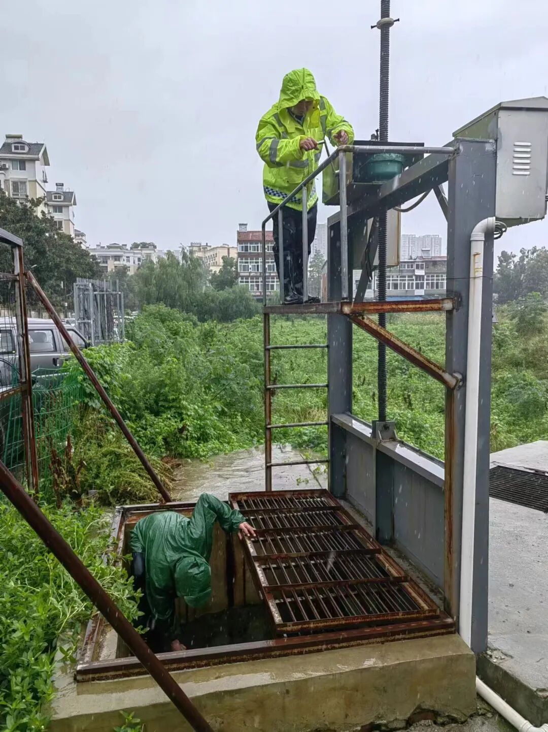 将军路街执法队员、环卫工人们连夜对城市排水管网进行全面排查,清理雨水箅子、检查下水井等排水设施,对780路公交站低洼处进行强排,确保排水畅通。