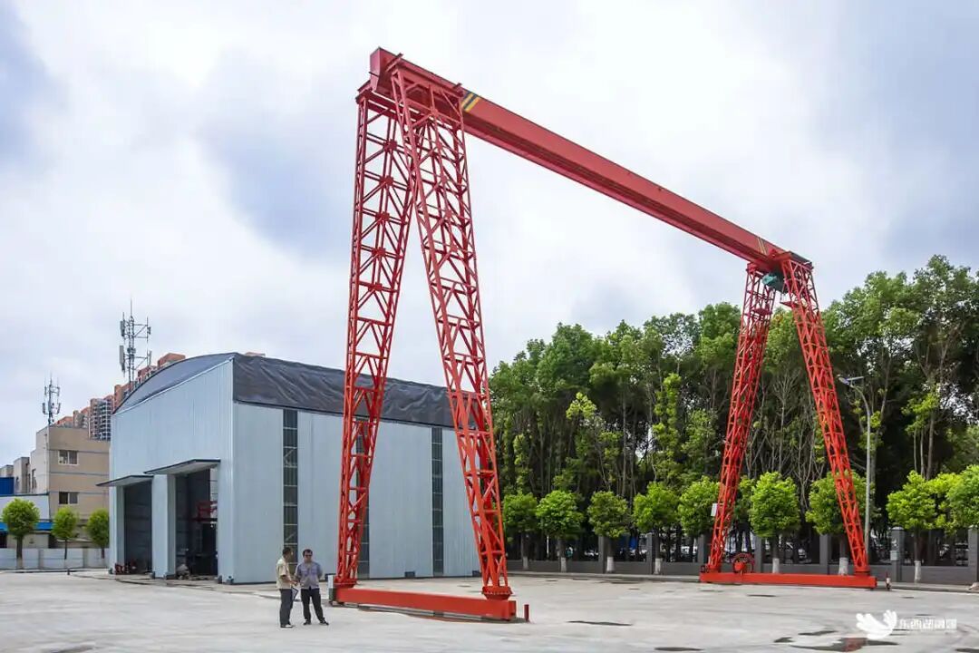 高大的龙门架来回作业,通过开启式屋顶,向绿电制氢装备生产车间吊装设备。