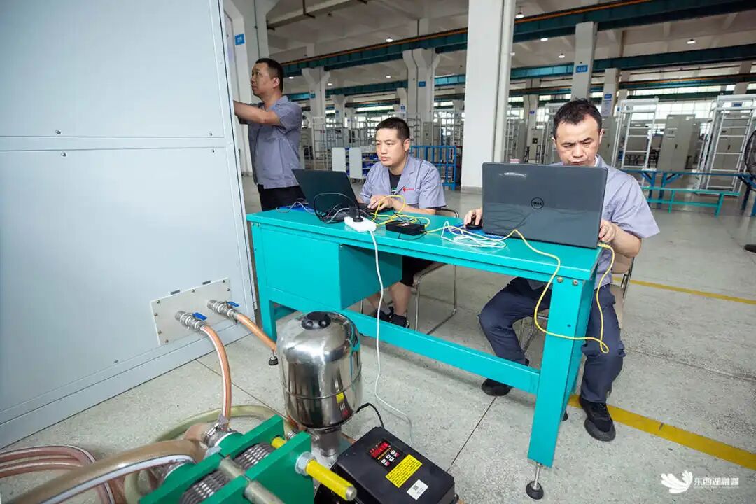 “回温正常,机柜工作温度正常。”回到技术中心装配车间,何贤伟听到技术员关于制氢电源机柜的测试报告。