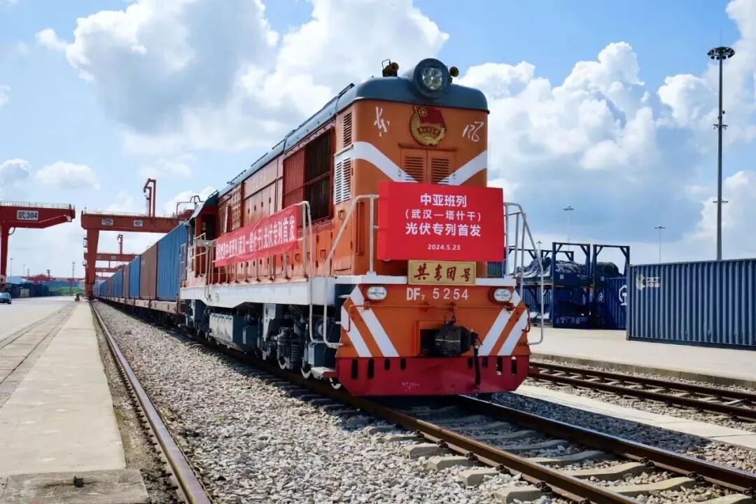 5月23日,中亚班列(武汉—塔什干)光伏专列从中铁联集吴家山中心站首发,为“湖北造”开拓中亚市场探出新路径,打通了氢能制储装备出海新通道。