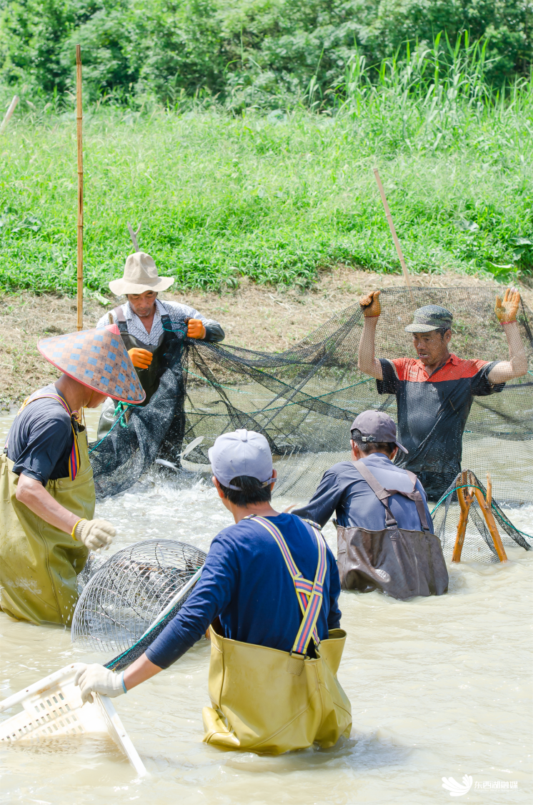 7月8日上午,记者看到东风垸堤上防汛人员顶着炎炎烈日巡堤查险,东风垸堤内工作人员下塘起网,抢鲜上市。